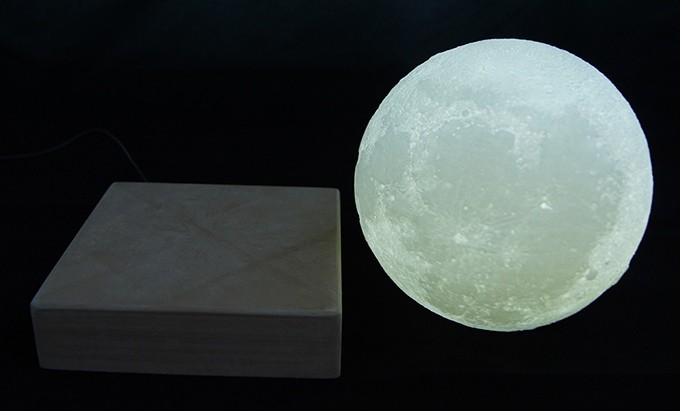 Omogućuju plutanje neodimijski magneti, a cirkulacija imitira orbita mjeseca. Korisnik može birati između toplog žutog i bijelog svjetla. Dostupno je u dvije veličine. Za manji treba oduzeti 120, a za veći 120 170 eura. Punimo ga bežično.
