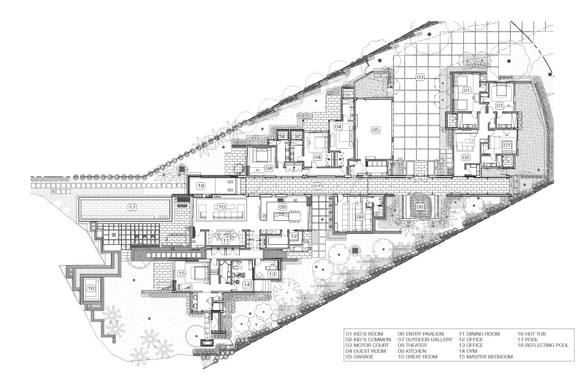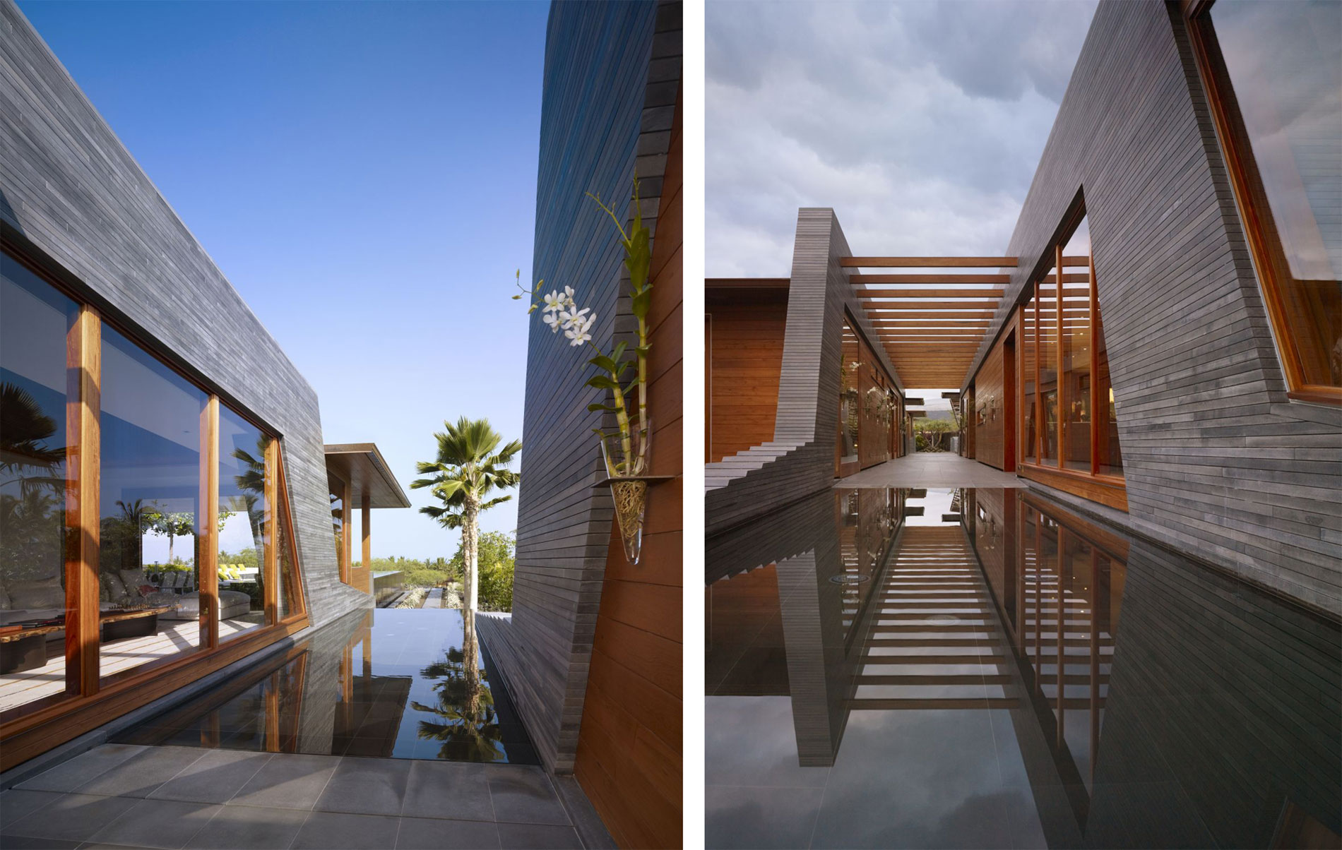 Residence Kona na istoimenom području Veliki otok ne nalazi se linearno uz imanje, već uz naklonost dva pogleda. Zadivljujuća kreacija svojevrsne proširene galerije služi kao os koja kroz korištenje prirodni elementi i pejzažne geometrije ovaj moderni dom skladno dijeli zapadni dio s pogledom na ogromni ocean i istočni uz mogućnost divljenja vulkanskim vrhovima. Spavaće sobe, središnji zajednički prostor, dnevni boravak, kuhinja i medijska soba raspoređeni su kao samostalne izuzetne strukture.