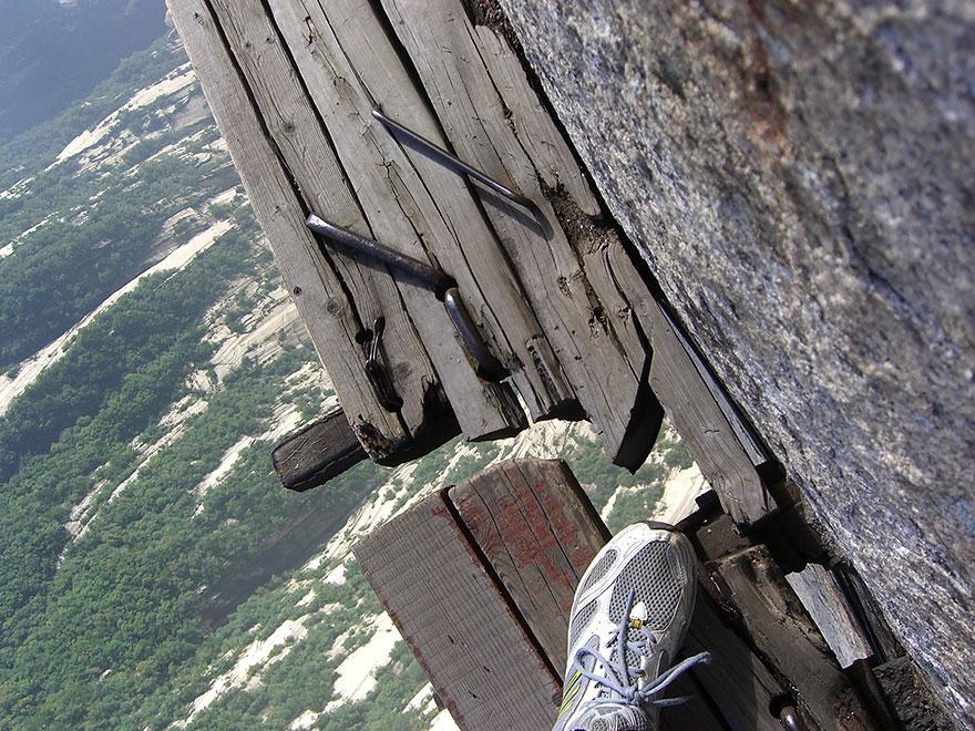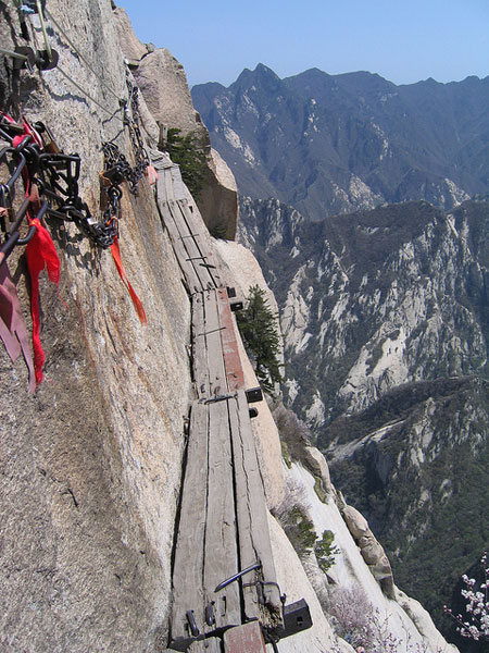 Gora Mt. Huashan (2160 metrov) velja za eno izmed petih svetih gora na Kina. Za sveto goro velja že od drugega stoletja pred našim štetjem, ko so se nanjo in v njeno okolico naselili številni romarji, menihi in nune. Po vsem tem času je gora pridobila tudi na turistični veljavi, saj je število gostov, ki si želijo sprehoditi čez nevarne klife vse večje. Iz tega razloga so tudi obnovili in zaščitili nekatere dele poti.