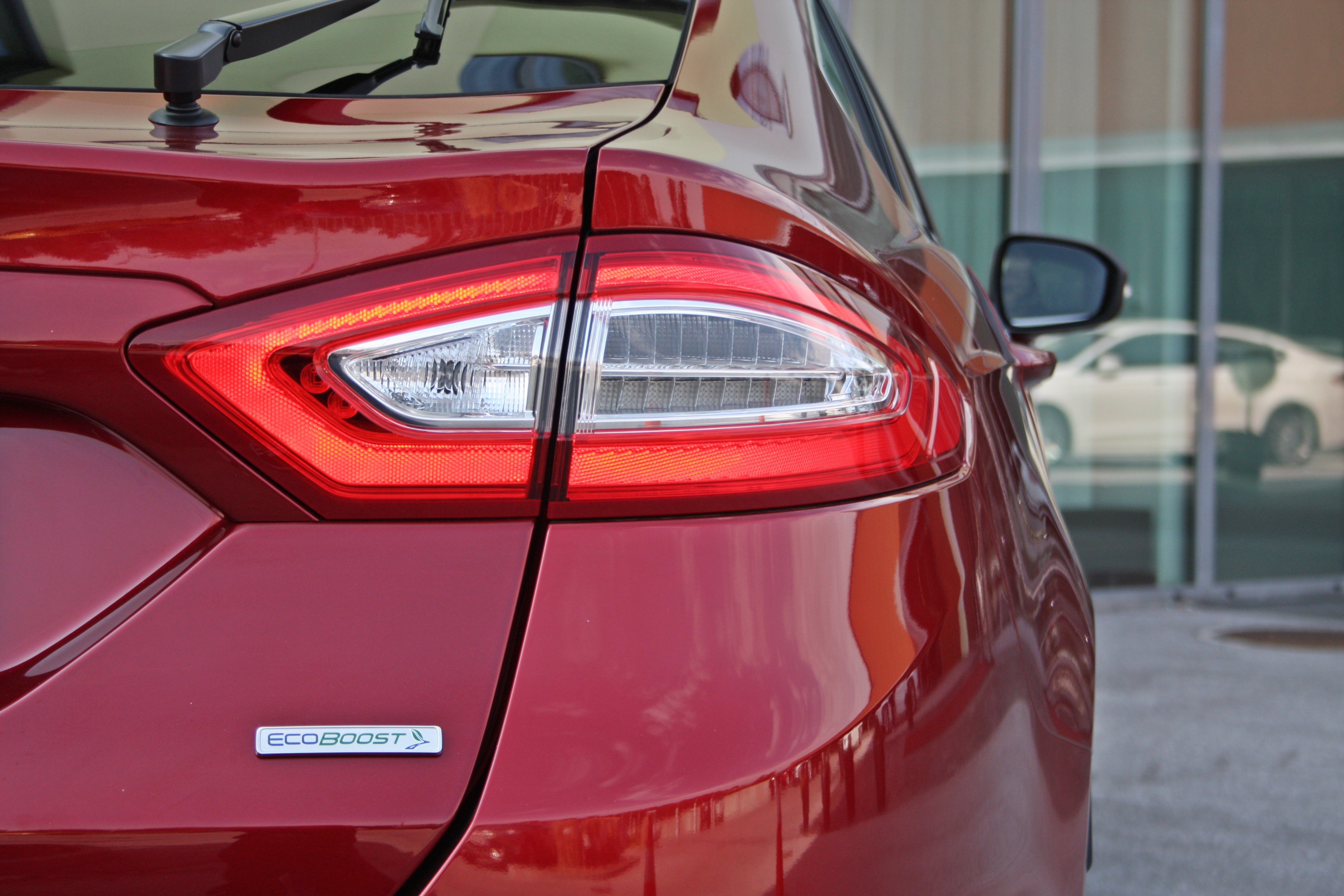 Novi Ford Mondeo nema praktički nikakvih dodirnih točaka sa svojim prethodnikom s dizajnerske točke gledišta, čini se mnogo srodnijim na trenutni fokus i također fešte, od kojega je naslijedio sada karakteristično Aston Martina motorizirani maska. Ovaj je odjeven u konkretnu količinu kroma, a svojim oblikom (točnije veličinom) za sobom je povukao vrlo nisku masku motora, koja uz oštro zašiljene farove osigurava i natprosječno mišićav izgled koji napuhani branici (koji prihvaćaju naplatke do 19 inča) samo ga pojačavaju.