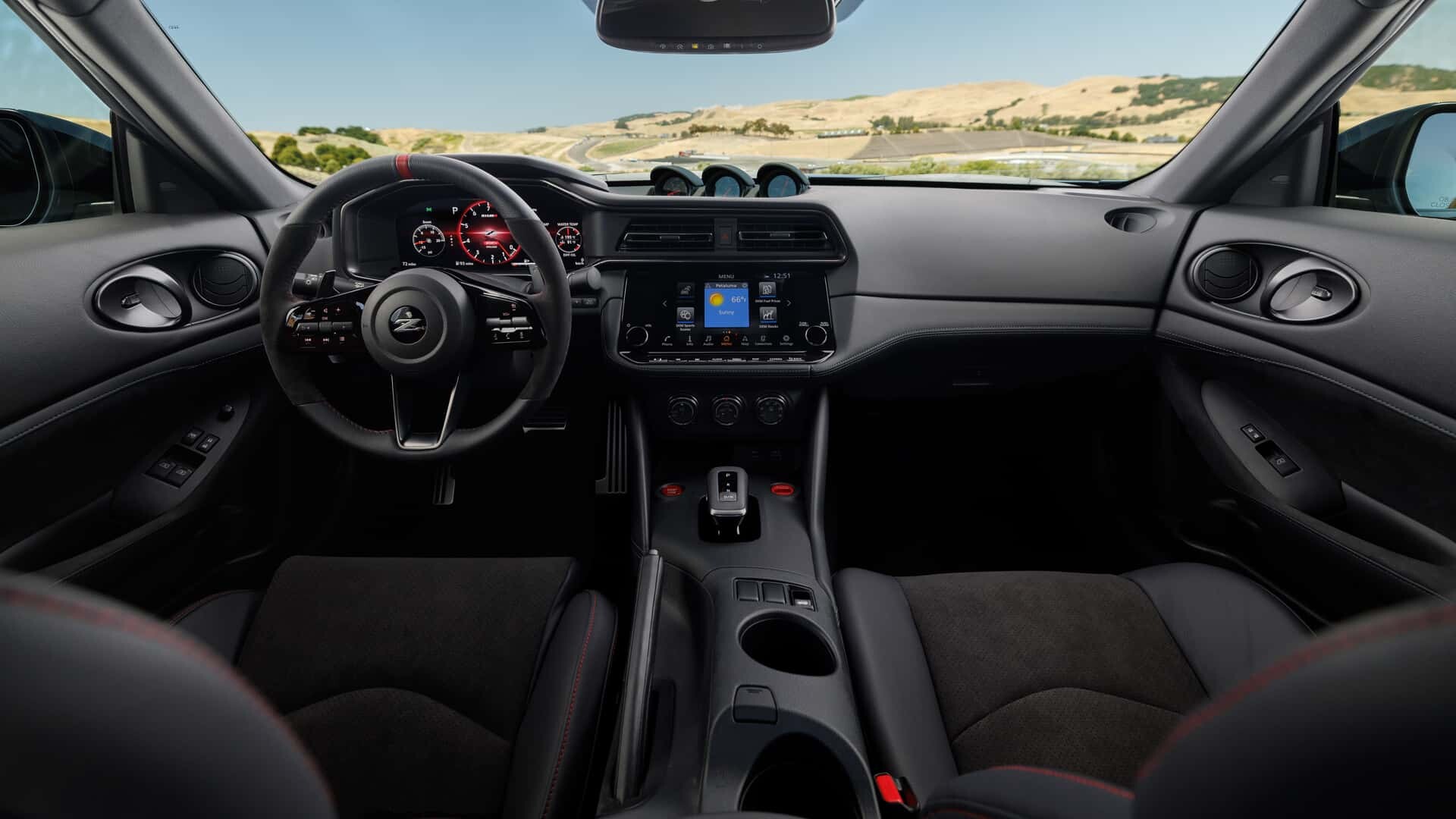 Nissan je također unaprijedio unutrašnjost modela Z Nismo kako bi odgovarala trkaćem stavu modela. Počinjemo s crveno eloksiranim tipkama za pokretanje motora i odabir načina vožnje. Zaslon s digitalnim mjeračem sada ima poseban Nismo logotip i crveni prsten oko brojača okretaja, što dodatno pojačava sportsku atmosferu u kabini. Za sigurnu i udobnu vožnju tu su Recaro sjedala u kombinaciji kože i alcantare, koja se mogu pohvaliti crvenim središtem i Nismo logom na naslonima za glavu.
