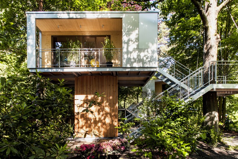 Urbane hiše na drevesih Baumraum niso namenjene zgolj počitnikovanju in romantičnim vikend izletom, saj nudijo dovolj udobja, da lahko v njih tudi živimo. Projekt, ki se je pričel kot eksperiment, s katerim so arhitekti raziskovali možnosti ustvarjanja alternativnih bivališč znotraj urbanega konteksta, je ščasoma zrasel v idejo o naselju urbanih hišic na zelenem obrobju živahnega Berlina. Hiše, ki so zgrajene iz dveh, 21 kvadratnih metrov velikih enot, odlikuje zračna in sodobna opremljena notranjost, ki ponuja vse, kar potrebujemo za udobno življenje.