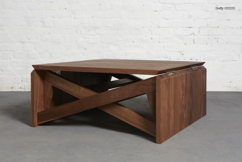 Stolić za kavu z uradnim imenom »MK1 Transforming Coffe Table« je vse kar potrebujete, če delite kuhinja i blagovaonica z dnevnim prostorom. Narejena iz masivnega hrastovega lesa ali kombinacije orehovega in brezovega vezanega lesa, se lahko v dveh preprostih gibih pretvori iz klubske mizice v jedilno mizo. Dimenzija klubske mizice, ki meri v višino 35cm, se spremeni pri jedilni mizi v 75cm in širina poveča iz 75cm na 135cm. Idelano za maksimalno izkoriščanje prostor.