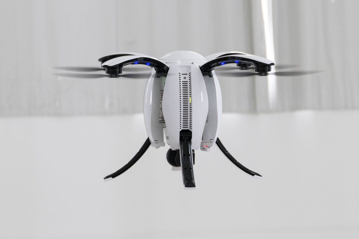 On se razmeće sa sletnim nogama, koji se elektronički (ot)sklapaju, a poluge s propelerima se ručno izvlače iz kućišta gdje se preklope natrag kada kvadrokopter nije u upotrebi. Onda ovaj može Avion težak 2,3 kilograma iskoristi kao ukras (stoji na posebnom stalku).
