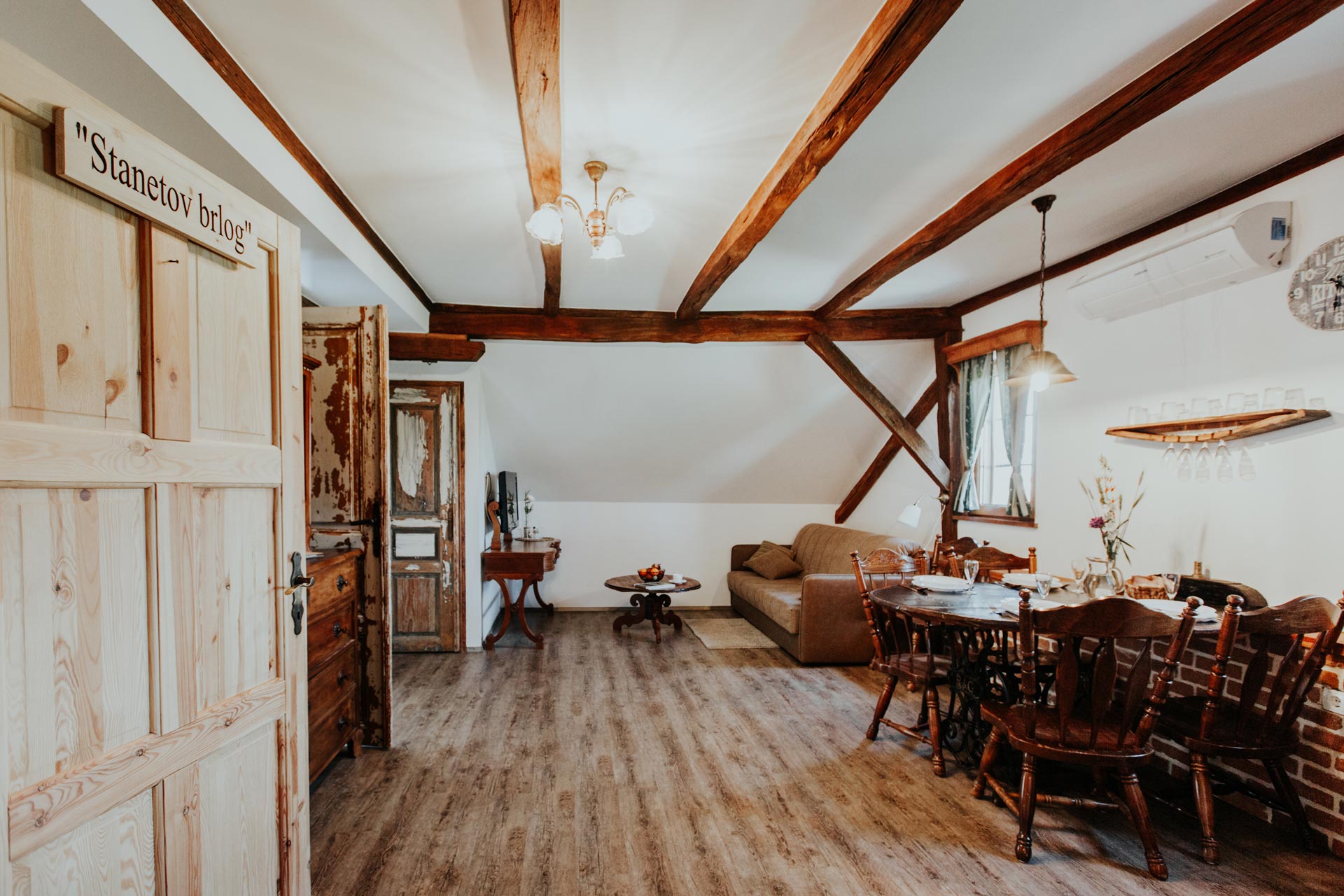 Apartmani nalaze se u renoviranoj seoskoj kući, a možete birati između Francove (7 osoba) ili Stanetove jazbine (5 osoba). Svi apartmani opremljeni su besplatnim bežičnim internetom, TV-om ravnog ekrana s kabelskim programima, klima uređajem i grijanjem. Svaki apartman također ima dobro opremljenu kuhinju i odvojenu spavaću sobu. Ispred kuće se nalaze besplatni parking, puno travnatih površina za kretanje, rekreaciju, piknike i druge aktivnosti na otvorenom. U toplijim danima priuštite si skok u vanjski bazen ili se tuširati pod vanjskim tušem. U slučaju lošeg vremena unutar objekta postoji zajednički prostor za druženje uz stolni nogomet, pikado, biljar i bar.
