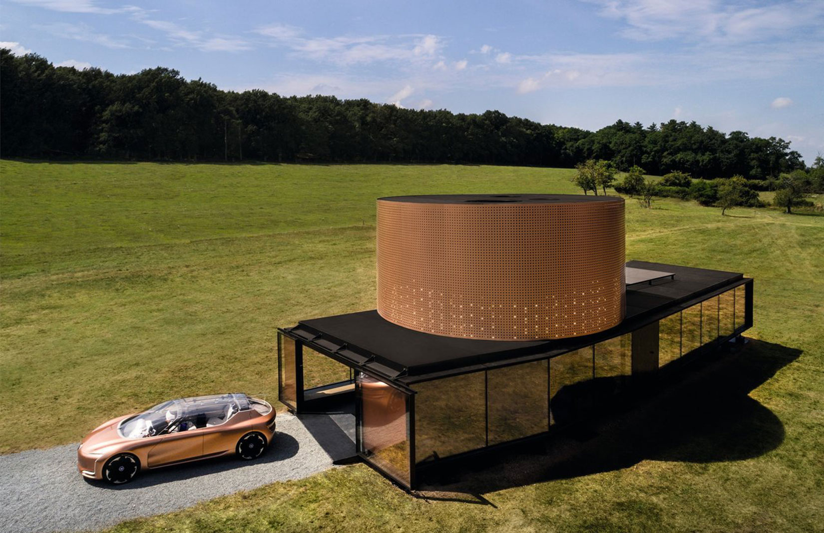 Renault je svoje Symbioz vozilo budućnosti zamislio 2030. godine. Osnovna ideja proizlazi iz topline doma u kojem svatko od nas uživa i koji u većini slučajeva nerado napuštamo. Interijer Symbioza osmišljen je kao još jedna prostorija u domu u kojoj se možete potpuno opustiti i osjećati kao kod kuće. Bit će to kao da sjednete za stol u dnevnoj sobi i odvezete se na posao.