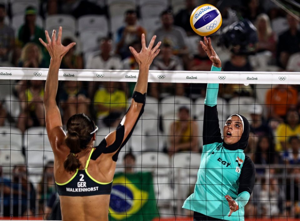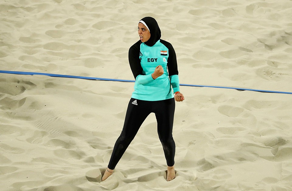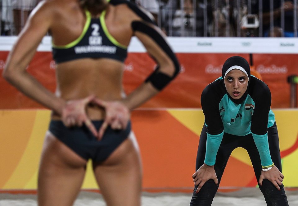 Še ne dvajsetletni egipčanski odbojkarici na mivki Doaa El Ghobashy in Nada Meawad sta ”šokirali” svetovno javnost, ko sta se na tekmi z Nemkama pojavili v hidžabu, s čimer sta poskrbeli za nekoliko manj gole kože, ki je sicer sestavni in za marsikoga (žal) tudi najmikavnejši del tega športa. Toda Egipčanki nista edini, ki sta se na olimpijskih igrah v Riu pojavili v hidžabu. Tudi sabljačica Ibtihaj Muhammad se je in je postala sploh prva Američanka v tem športu, ki se je na tekmovanju pojavila v taki opravi. Z njo želi odstraniti predsodke in spremeniti pogled na muslimanske športnike kot tudi spremeniti retoriko o tej veri oz. kulturi.