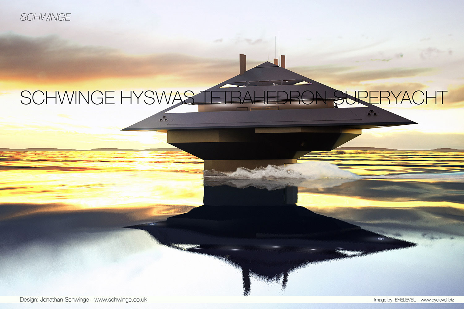 S tem načinom pogona Schwinge Hyswas tudi daje občutek letenja. Pod letečo piramido, ki premore vse razkošje najbolj ekskluzivnih superjaht, se je podpisal londonski arhitekt Jonathan Schwinge.