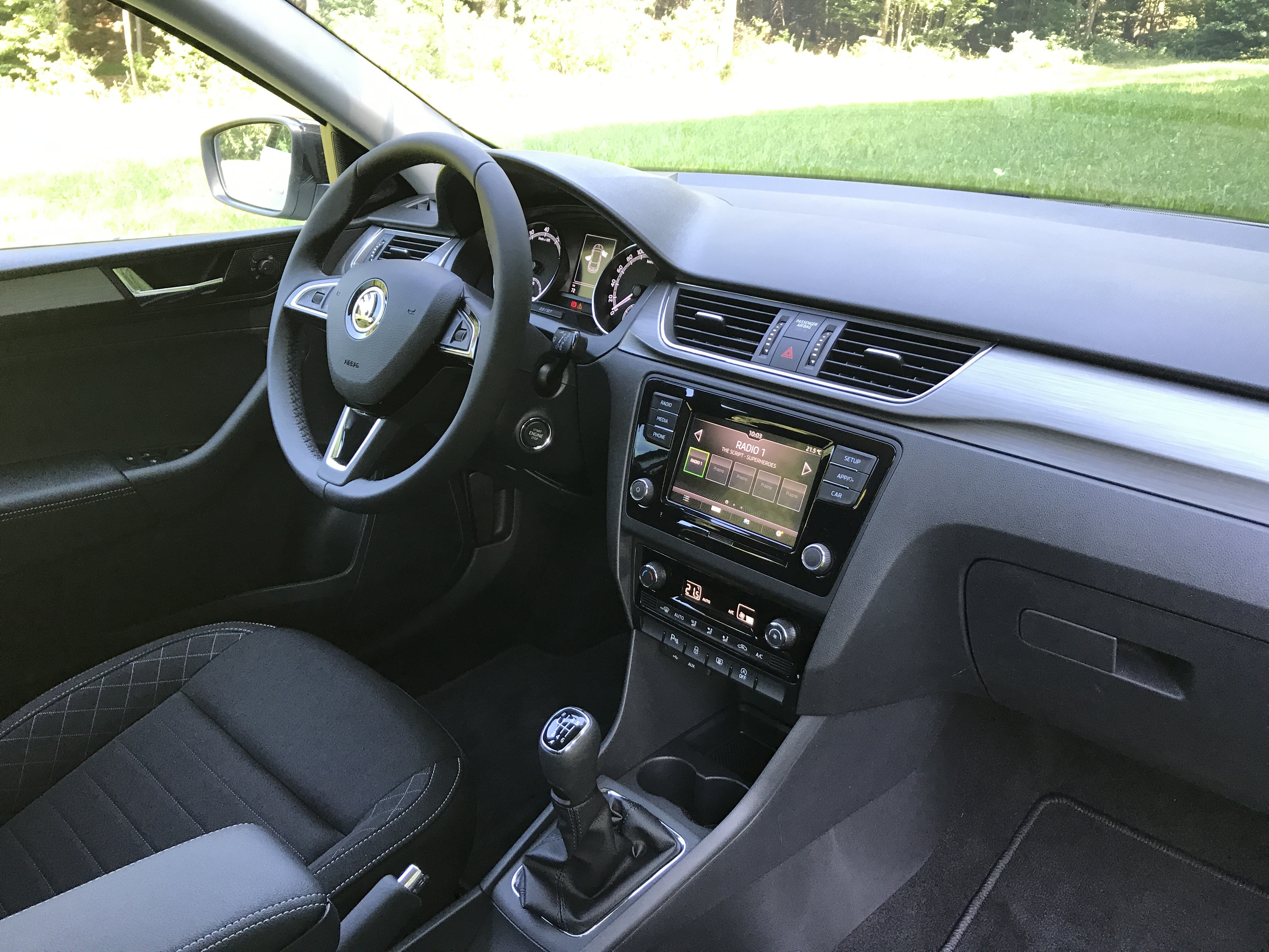 Kao vanjski tudi v notranjosti ni kakih bistvenih sprememb. Rapid je še vedno zelo prostoren avtomobil in ostaja eden izmed vodilnih v segmentu na tem področju. Prav tako je bil osvežen videz armaturne plošče, med tehnologijo pa je zdaj na voljo Škodin Connect sistem, ki poleg povezljivosti s pametnimi telefoni zajema tudi pridobivanje prometnih informacij v realnem času, prek mobilne povezave pa potnikom omogoča dostop do svetovnega spleta. Ker gre za obiteljski auto, ima prenovljeni model še dodatna dva USB priključka na zadnji klopi.