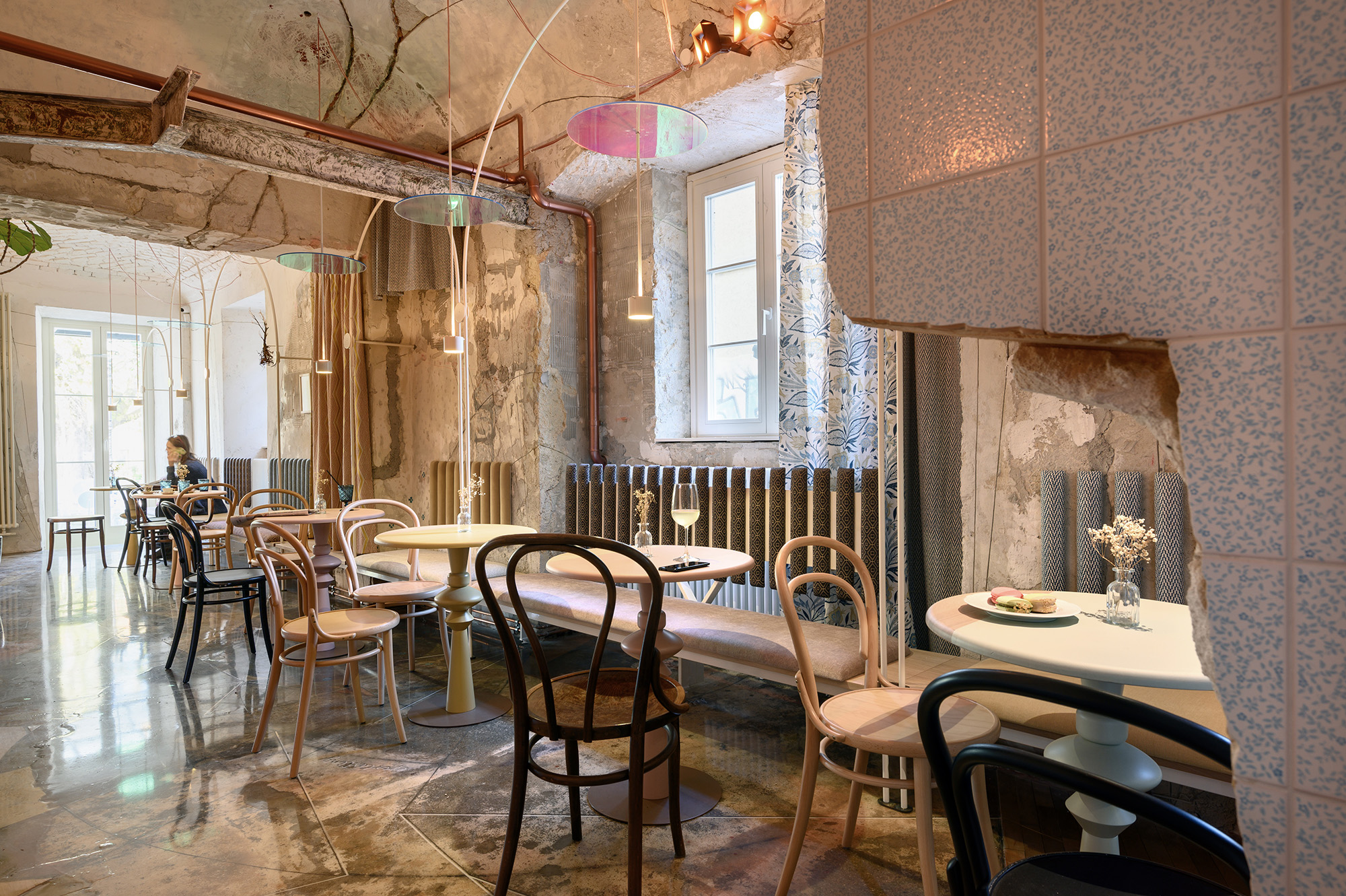 Soba je dizajnirana s iznimnom širinom u butik arhitektonskom stilu u ured Trojstva. Umjetnik Jaša Mrevlje Pollak osmislio je jedinstveno dizajniran prostor koji razigrava sva osjetila. Svaka čast prostor je priča za sebe, a za dizajn je korišten uglavnom reciklirani materijal. U jedinstvenom prostoru opeka je vidljiva, pod i zidovi su sirovi i nedovršenog izgleda, parket i keramičke pločice na zidu su novi. Održivi pristup a vidljivo je i kroz vintage šalice za kavu i tanjure u kojima se poslužuju delicije.
