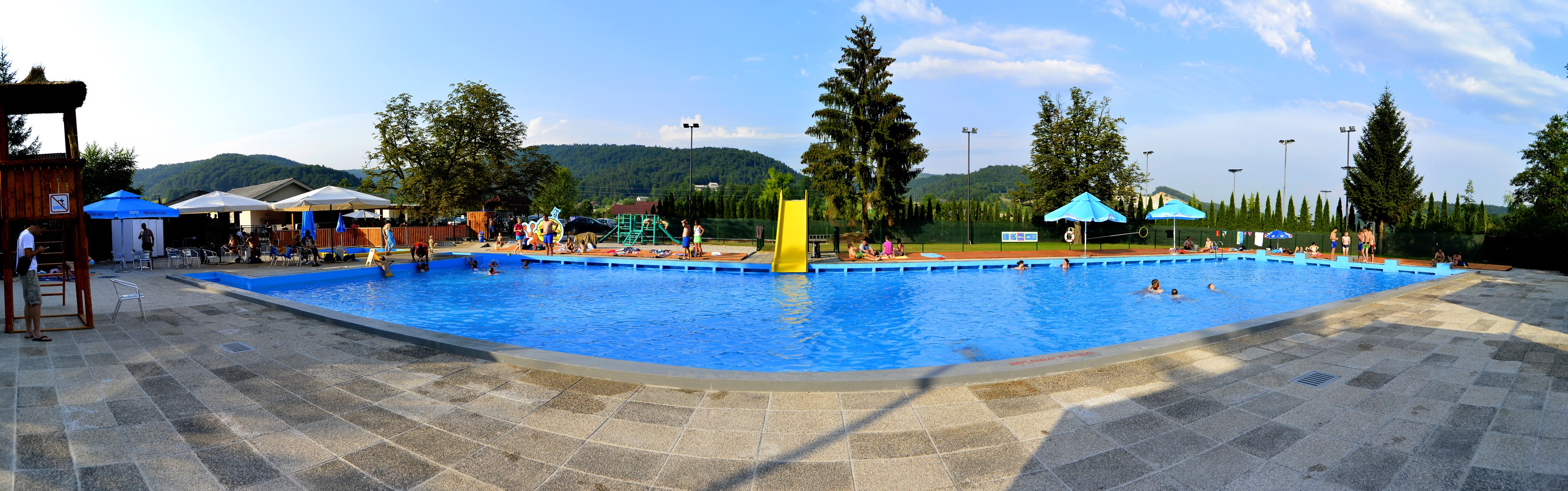 Bazen ima dugu tradiciju i raznovrsnu ponudu. Samo 15 minuta od Ljubljane nalazi se veliki vanjski bazen u kojem je uz bogat užitak odmora moguće i rekreativno plivanje na 5 plivačkih staza. Za one najenergičnije postavljen je i linearni tobogan. Dva dječja bazena namijenjena su najmlađima. Tijekom sezone možete se okrijepiti u sezonskoj kuhinji, a caffe bar radi cijelu godinu s ponudom slastica i grickalica. Za djecu je uređeno lijepo dječje igralište Polžja hišica, za zatvorena društva organiziraju domjenke, zabave ili animacije za djecu, a prostor se može iznajmiti i za privatnu zabavu ili proslavu.