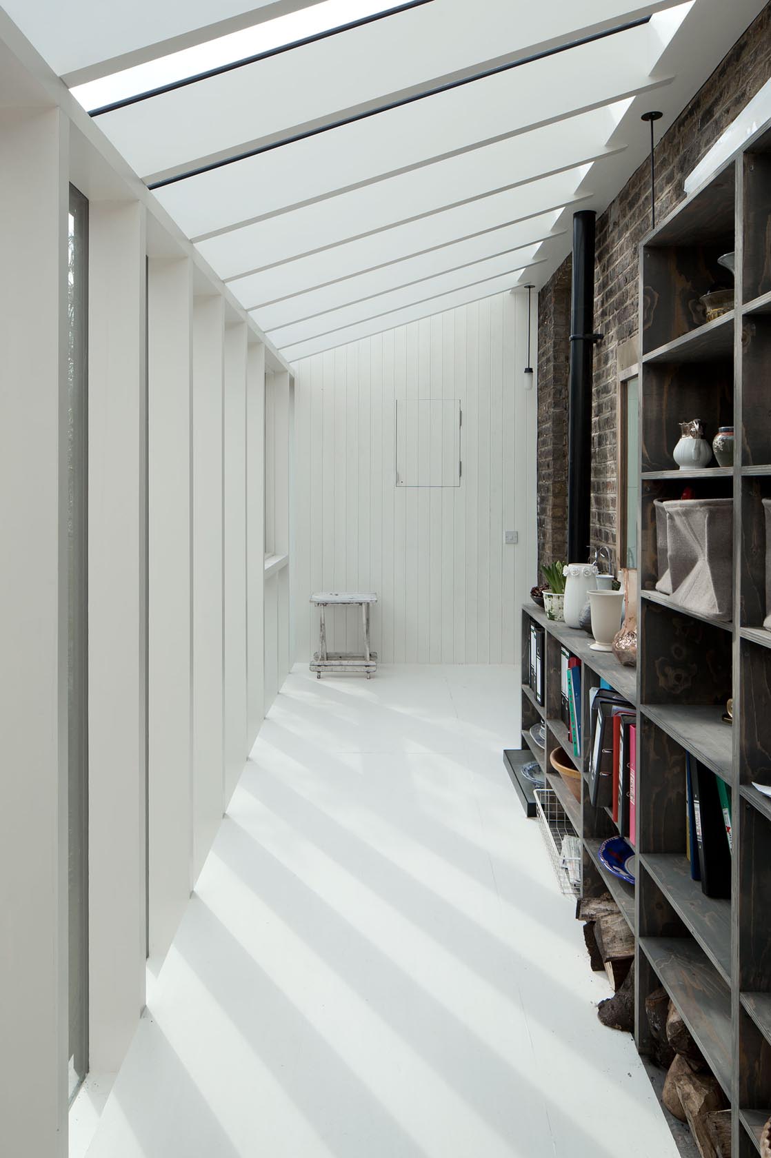 Proširenje je projektirano u studiju za klijenta, arhitektonskog kritičara Rowana Moorea 6a Arhitekti. Obična kuća u nizu izgrađena oko 1830. dobila je volumen s drvenom fasadom. Ima novu spavaću sobu i kupaonicu. Proširenje zadire u vrt pod pravim kutom u odnosu na niz kuća, ali u isto vrijeme izbjegava stablo sa svojom zaobljenom krivuljom. Jedan od članova obitelji koristi invalidska kolica, zahvaljujući čemu su različite razine kuće elegantno povezane rampama.