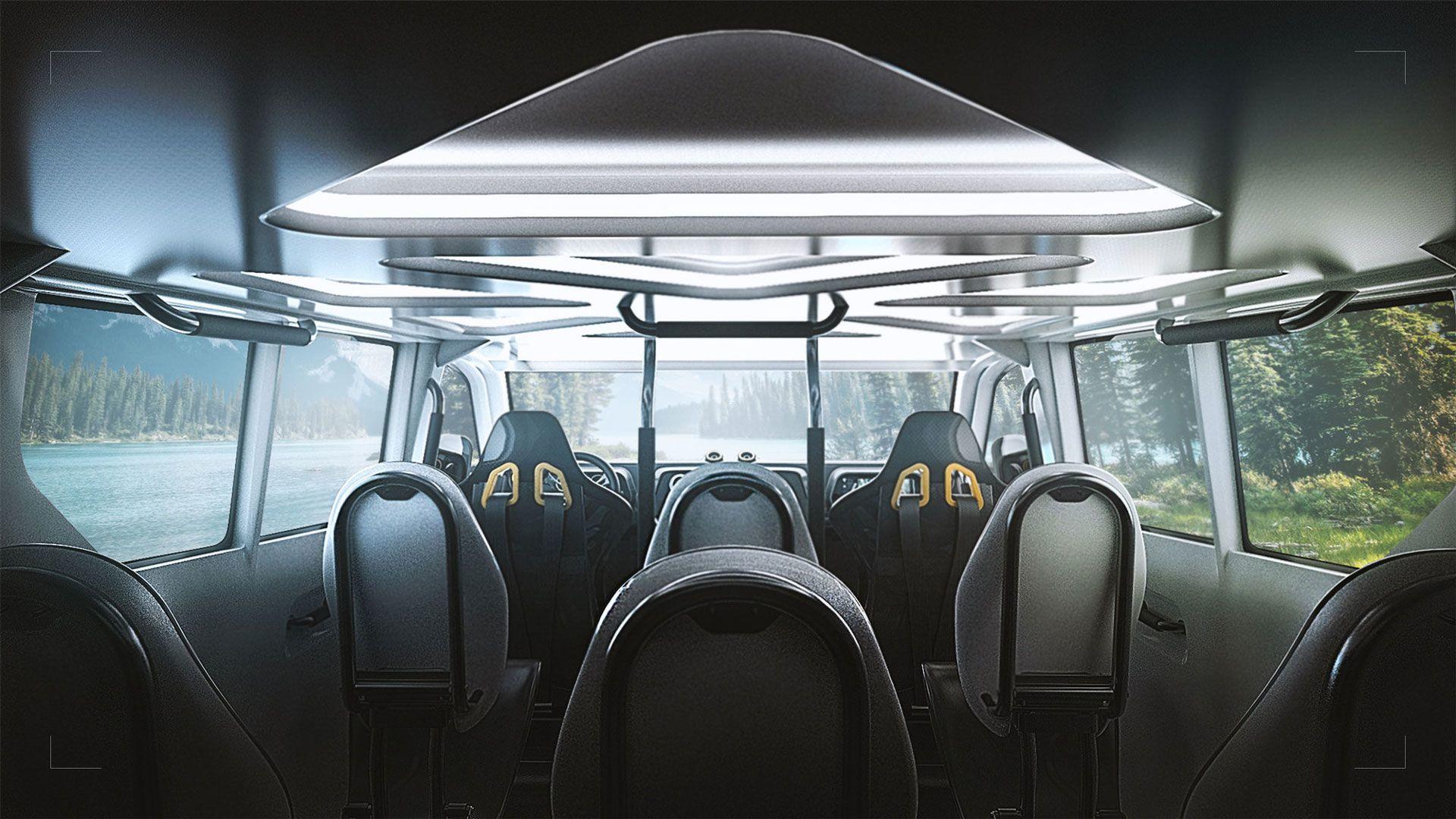 Potniška kabina ima veliko vjetrobransko staklo, kar omogoča maksimalen pregled nad okolico in stanjem terena. Pred voznikom ni veliko instrumentov, samo nekaj osnovnih, da se lahko voznik povsem posveti vožnji po zahtevnem terenu. Zaslon za navigacijo do ponesrečenca je pred sovoznikom, ki pomaga vozniku pri navigaciji. Zadnjih šest sedežev je mogoče zložiti, s tem pa ustvarimo dovolj prostora za nosila. Ali bo Surgo resnično zaživel ali ne, bomo še videli, smo pa prepričani, da bi ga z veseljem uporabljali prav vsi gorski reševalci.