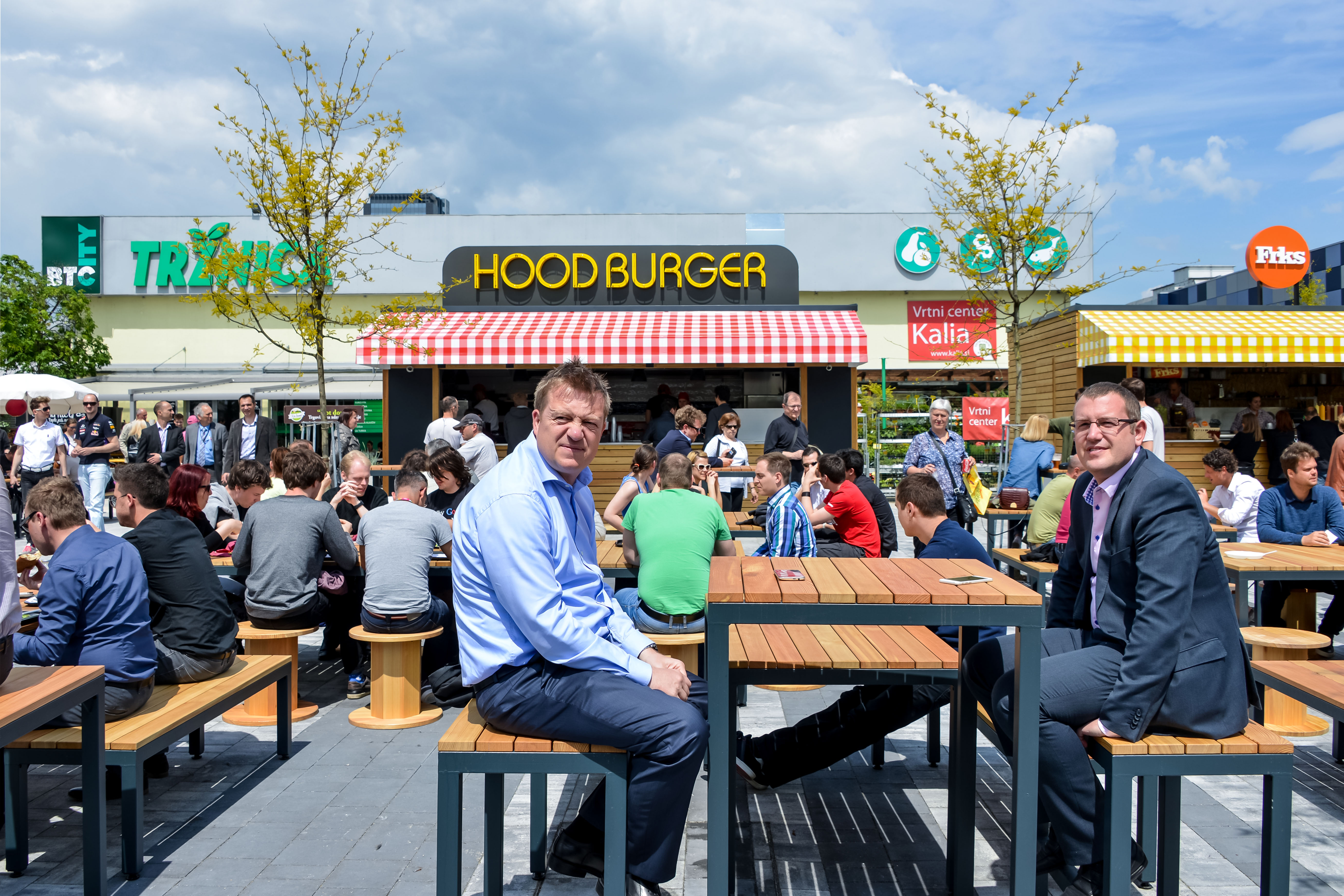 Među šest ponuđača ulične hrane na Tržnici BTC City nalazimo španjolsko selo, koji uživa u tapasima s autentičnim španjolskim namirnicama i drugim jelima španjolske kuhinje, Frks, koja nudi ukusne wrapove, osvježavajuće salate, grickalice i friks hamburgere sa 100% slovenskom govedinom, Hood burger s junećim i pilećim hamburgerima, sendvičima s odreskom i domaćim krumpirićima, Chutyjev s autentičnim tajlandskim jelima, svježim i domaćim začinima i umacima, Top Dunaj'c uz bečka jela i jela s roštilja, pečenje, salate i Radha Govinda, vegetarijanski restoran s prizvukom indijske i mediteranske kuhinje, ali naravno i za vegane s bogatom ponudom.