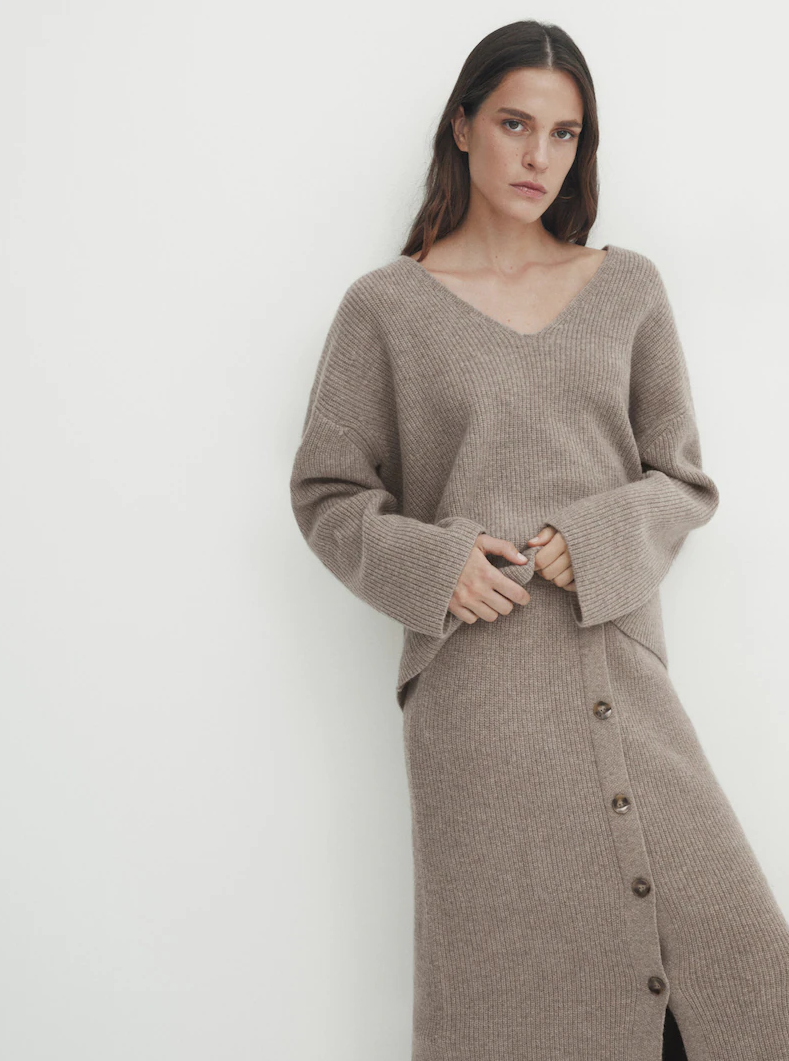 Nose se i pleteni kompleti odvojeno i stvarati raznolike outfite. Pleteni top kombinirajte sa širokim trapericama ili suknjom, dodajte gležnjače i oversized blejzer za sofisticirani poslovni look. Kombinirajte pletenu midi suknju s opuštenom košuljom, omotajte pulover oko vrata i komplet upotpunite visoke kožne čizme za elegantan, ali udoban izgled.