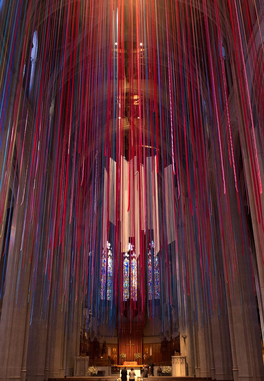 Ako je katedrala mjesto posvećeno duhovnoj introspekciji, potonja će biti s djelom koje je stvorila Anne Patterson još dublje. Umjetnica koja kaže da može osjetiti boju i vidjeti zvuk nalazi se u katedrali Katedrala Grace je u San Franciscu stvorila djelo "Graced by Light" - objesila je čak 35 kilometara (!) vrpci koje vise sa stropa katedrale i pažljivo ih osvijetlila. Sve djeluje poput šarene zrake s neba, što je i svrha instalacije koja bi simbolično trebala spojiti zemlju i nebo, a vrpce u nebo nose molitve, snove i želje.