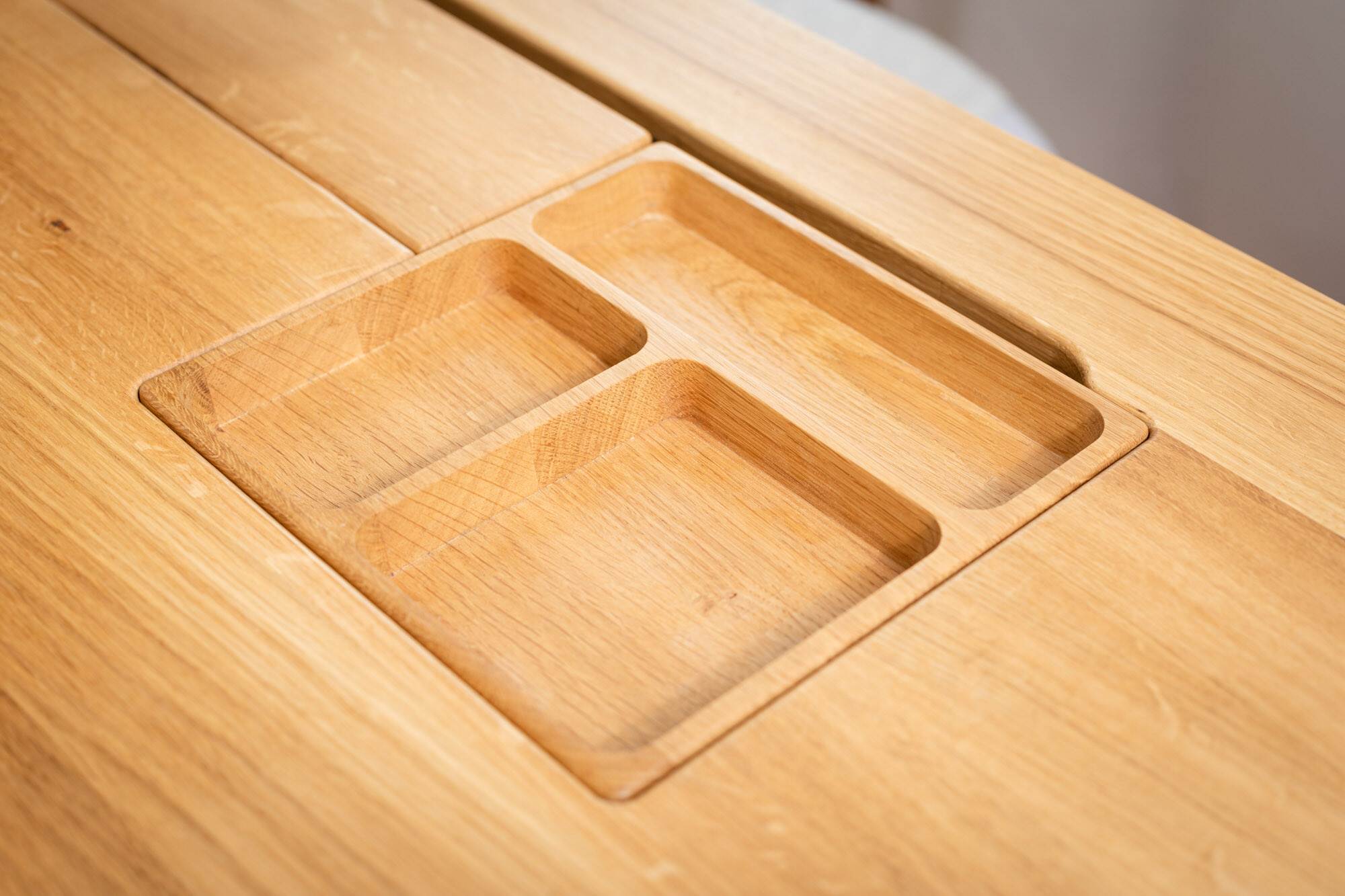 Izvanredna značajka ErgoHide je njegov fleksibilan oblik. Za svoj stol birajte između masivnog hrastovog drva ili "proizvođačkih materijala" i tako odaberite ploču stola koja odgovara vašim potrebama. S tri različite radne površine za puno drvo i MDF (ploču srednje gustoće), možete stvoriti radni prostor koji odražava vaš stil i preferencije. No s brendom EgoHide tu nisu stali. Izrađuju Vam i stol, točno po Vašim mjerama. Jednostavno vaše želje unijeti u konfigurator!