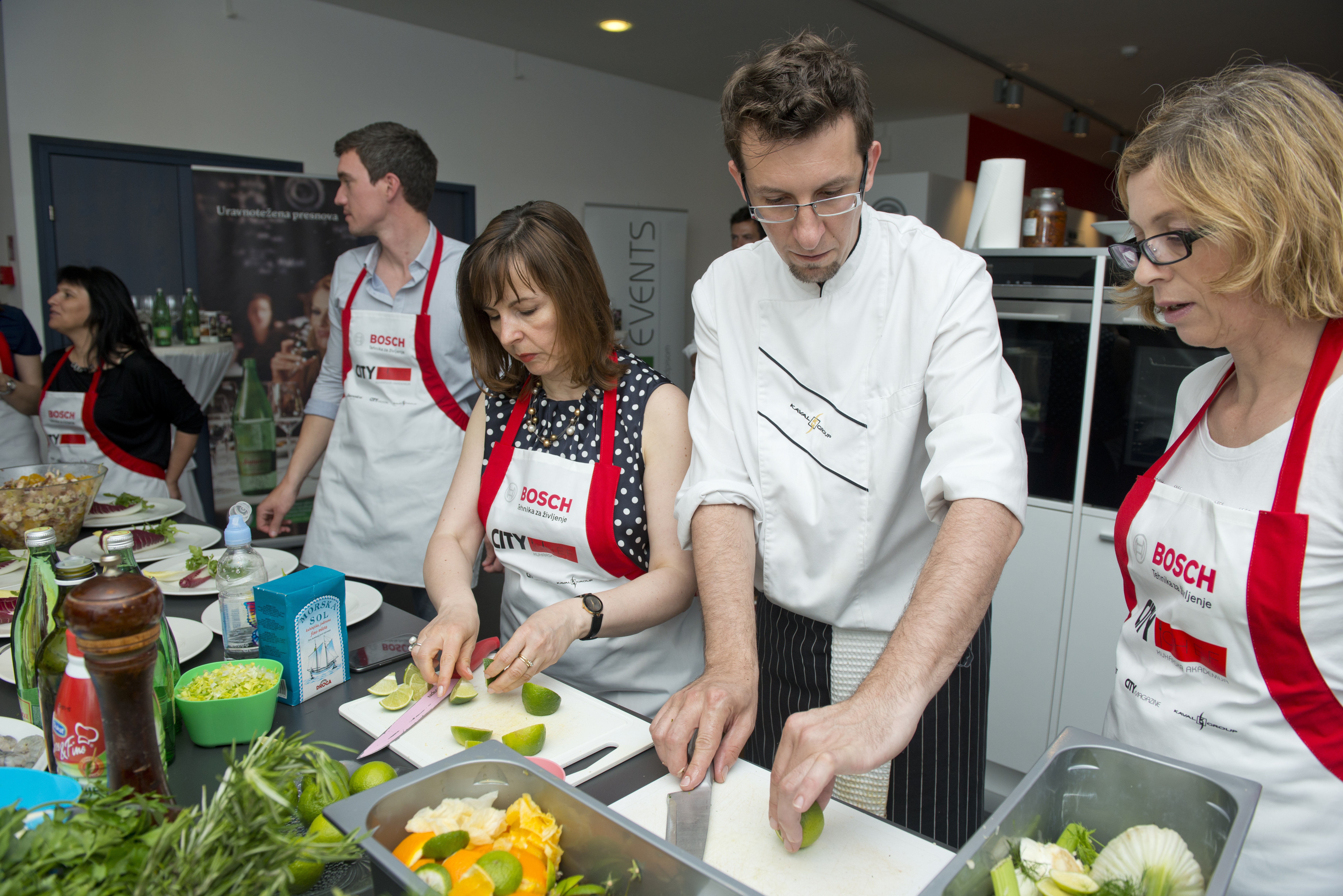 Glavna jela poslužuju se u preuređenom salonu Bosch Siemens u Ljubljani priprema glavni kuhar gostionice i pizzerije Kaval, Dragan Marjanović, a slatke tajne pobrinuo se slastičar iz Lolite, Greg Roda. Neizostavan partner dobre hrane svakako je čaša dobrog vina.