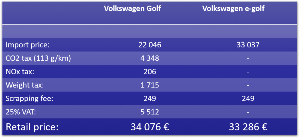 Sljedeći primjer uspoređuje EV model sa sličnim benzinskim modelom i jednostavno ilustrira kako norveški porezni sustav omogućuje električnim vozilima da budu konkurentna na tržištu. I zašto je takav model praktički moguć u svim zemljama?