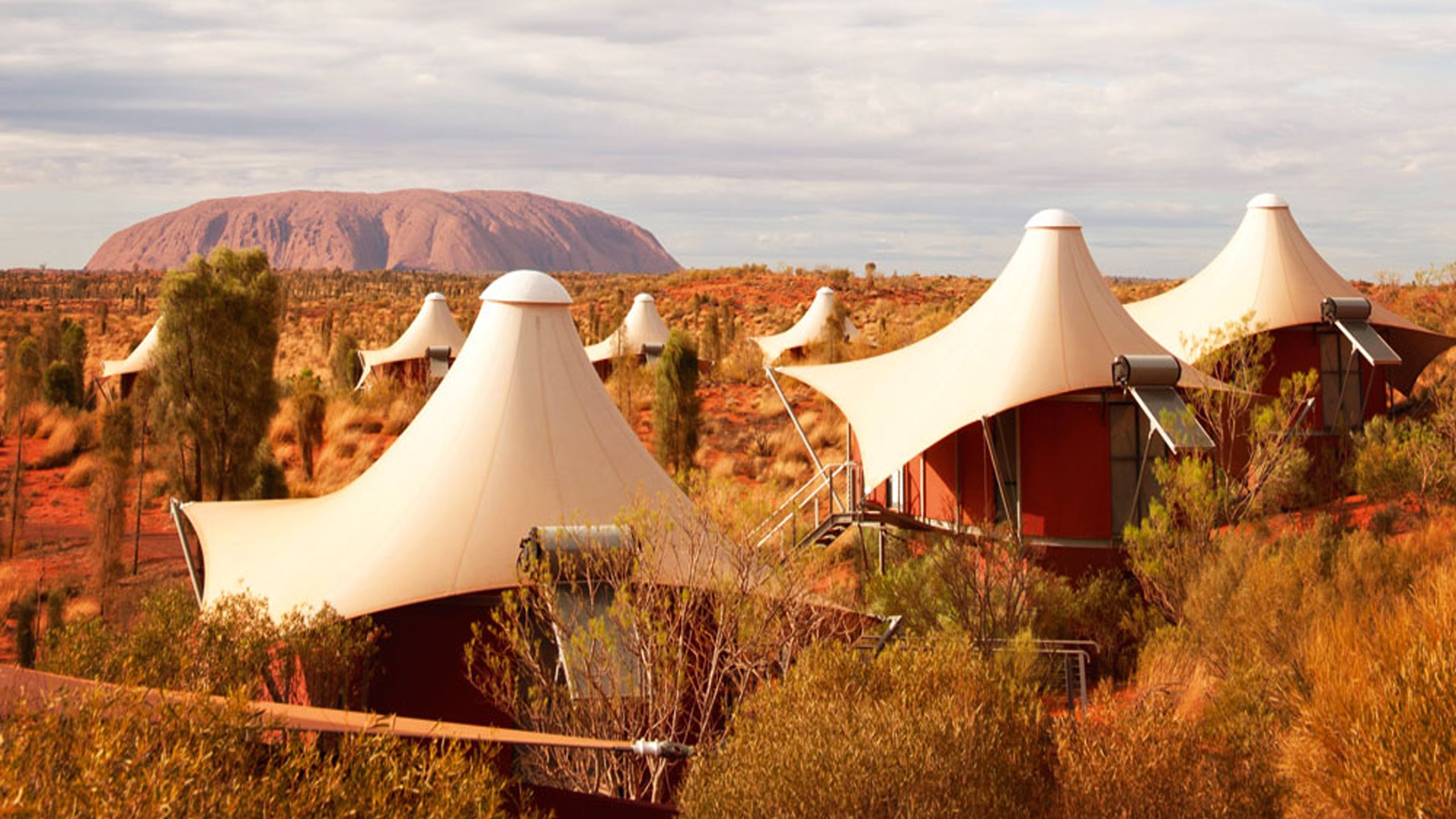 Zemljopisna dužina 131°, koji je dobio ime po dužini parka, je luksuzan pribjeći, u kojem stoji 16 šatora ili paviljoni. Svaki od šatora opremljen je namještajem raznih australskih dizajnera, drvenom terasom, kaminom i velikom staklenom stijenom kroz koju se možete diviti Uluru. U zajedničkom dijelu resorta Kuća dina je restoran i dnevni boravak, gdje uz piće možete podijeliti svoje osjećaje s ostalim gostima. Cijene noćenja po osobi kreću se od 940 eura do 3000 eura, ovisno koliko soba ima kreveta odn u kojem šatoru boravite. Sva hrana, piće pa čak i prijevoz do zračne luke uključeni su u cijenu.