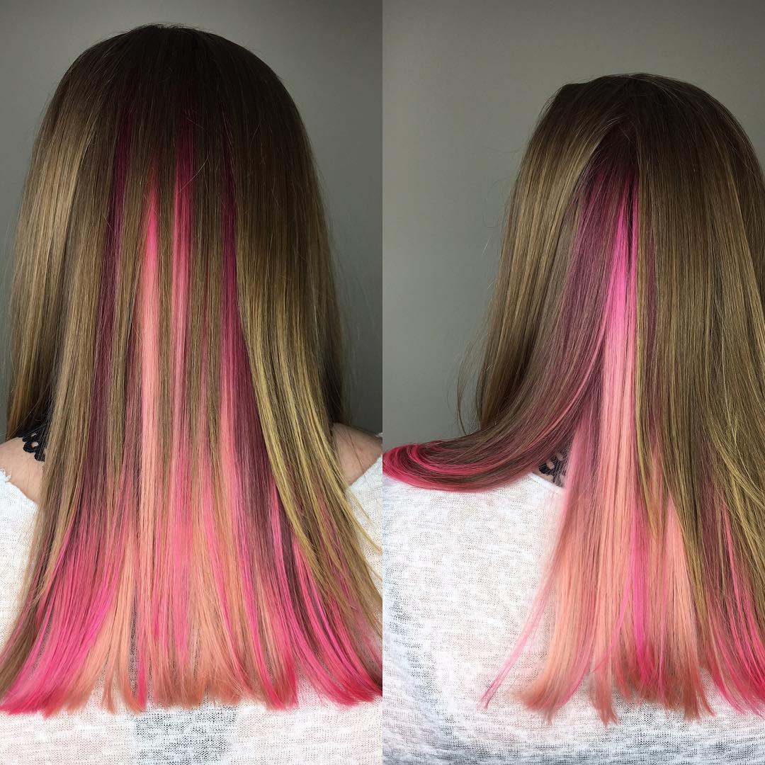 Galerija - ženske frizure 2017: geode kosa - jarke boje skrivene među prirodnom kosom