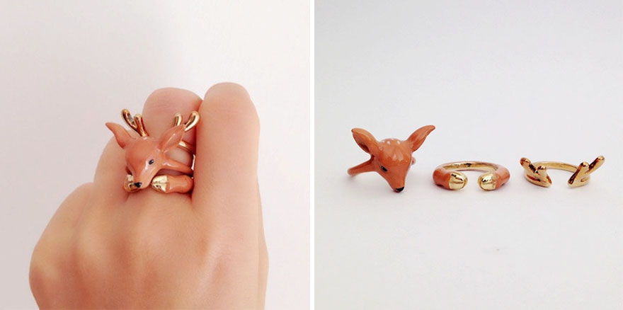 Zakaj ne bi, namesto da različne prstane nosite na različnih prstih, vse nosili na enem prstu? Ne govorimo o bokserju, ampak o tridelnih prstanih z motivi živali, ki jih najdete v spletni trgovini Etsy.
