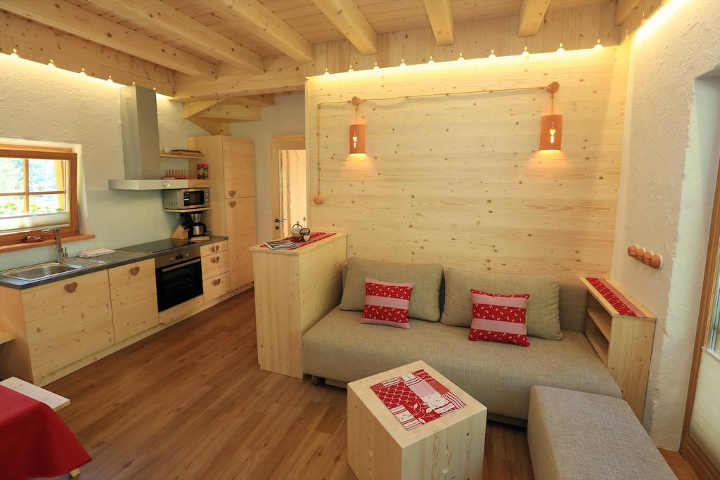 Le eleganti baite in legno sono arredate in stile moderno e minimalista. Vantano finestre panoramiche dal pavimento al soffitto che offrono viste sullo splendido paesaggio circostante. Le baite in legno includono una terrazza arredata e un angolo cottura completamente attrezzato. Sono inoltre disponibili un forno a microonde, un frigorifero e attrezzature per la preparazione del caffè. di tè. È inoltre possibile utilizzare la cucina in comune con formaggi, yogurt e salumi locali gratuiti.