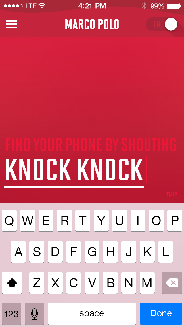 Telefoni intelligenti nam omogočajo, da vemo kje se stvari nahajajo, a kovačeva kobila je zmeraj bosa, in problem nastane, ko iščemo sam i phone. No, od zdaj naprej tudi kovačeva kobila ni več bosa, saj aplikacija Marco Polo poskrbi, da se vam telefon ”javi”, ko ga ”pokličete”. A to ne pomeni, da z drugega telefona zavrtite svojo številko, pač pa dobesedno, saj ga poiščete z glasom. Ime, na katerega sprva sliši, je Marco, svojo lokacijo pa javi s tem, da nazaj zakliče Polo.