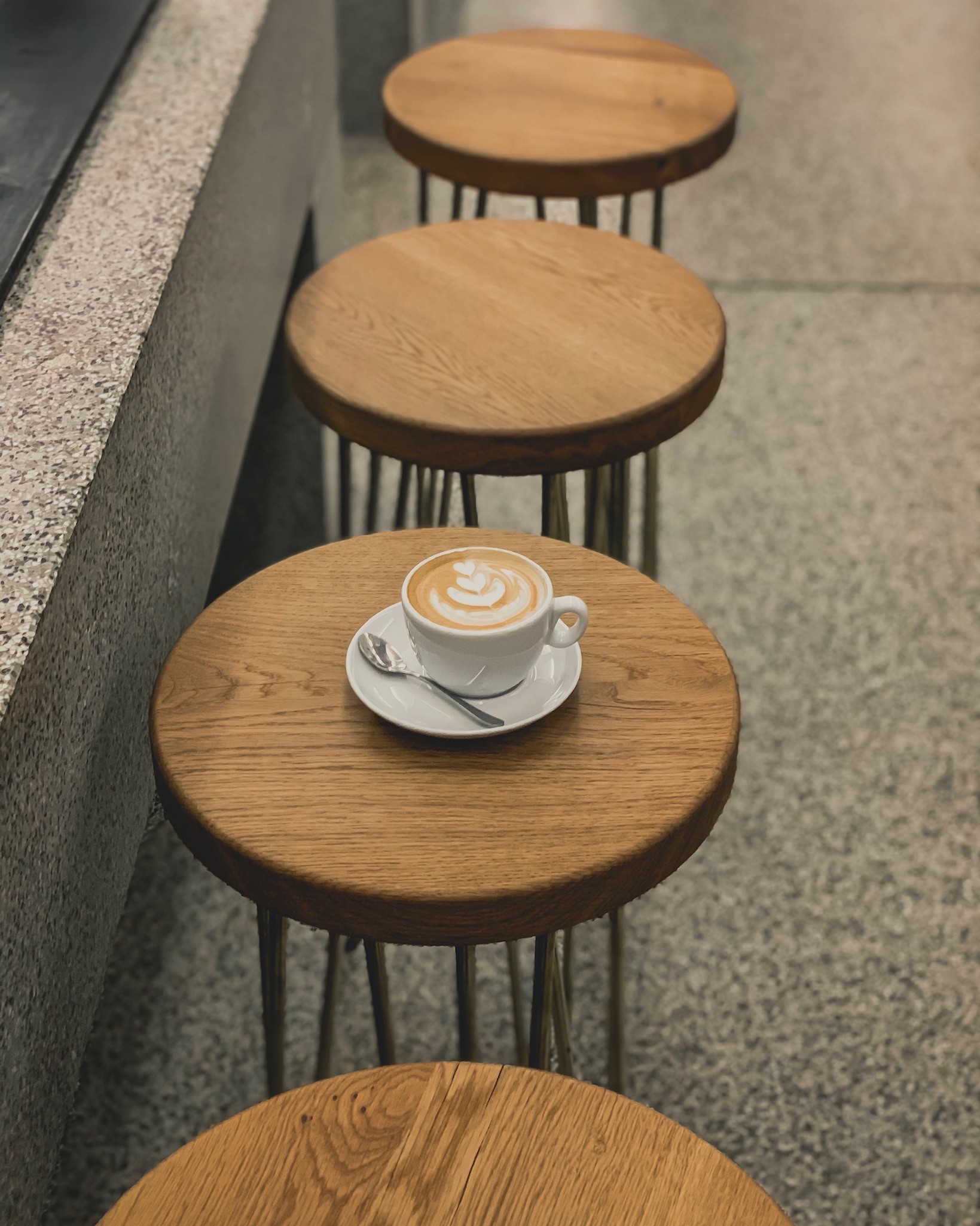 Completa tutto questo bene vegetazione verde. A lato del bancone, che un tempo era il banco di vendita del pescivendolo, si sono posizionati in primo piano macchina da caffè San Remo Cafe Racer di fascia alta molto attraente, che è il cuore del bar.