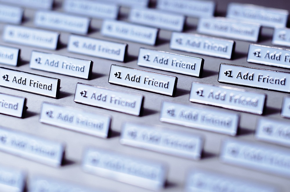 Dove facciamo nuove amicizie oggi? Su Facebook, ma dove altro? La spilla +1 Add Friend, per la quale Dorota Pankowska si è ispirata ai social network, più precisamente a Facebook, dimostra che fare amicizia online è diventata una norma sociale. Di conseguenza, anche la parola "amico" cominciò ad essere usata tra virgolette. Lo avresti?