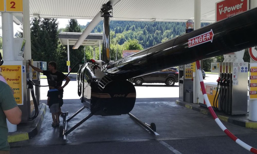 S Slovaške prihaja posnetek iznajdljivega češkega pilota helikopterja, ki mu je zmanjkovalo goriva, zato je moral poiskati najbližjo bencinsko črpalko. Ker letališča ni bilo v bližini, je s helikopterjem pristal kar na bencinski črpalki za vozila. Točneje na črpalki v slovaškem kraju Valaská, ki sicer ni opremljena za točenje goriva helikopterju, toda pilot se je znašel. Vijakarju je namestil kolesa, zložil propelerje in se zapeljal do ročke za dolivanje goriva.