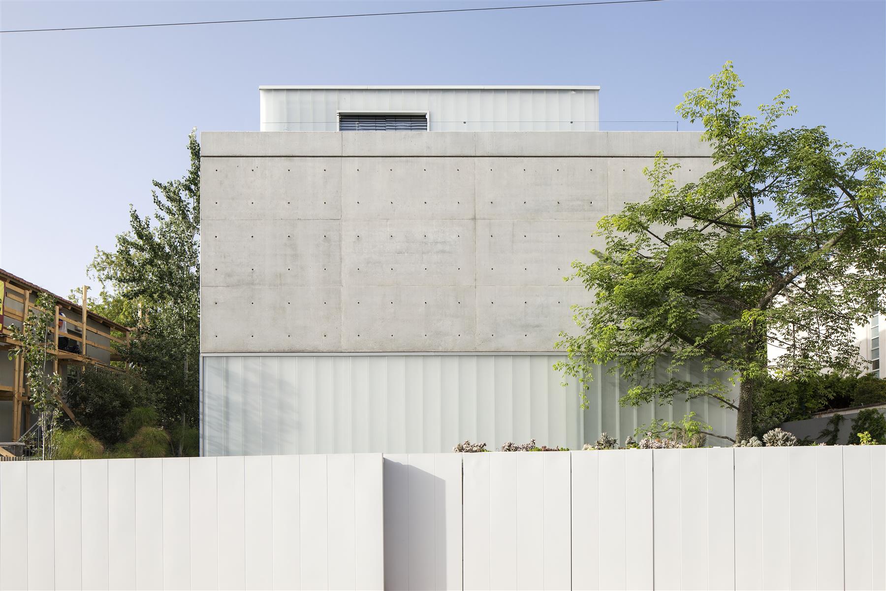 Kombinacija steklo-beton ponuja različne stopnje zasebnosti, kajti medtem ko na južni strani ta dvonadstropna hiša igra ”nudista”, je na severni čisti ”zapetež”. Pred dnevnim prostorom in tik za panoramskimi drsnimi stenami se bohoti čudovit piscina all'aperto, v zgornji etaži pa najdemo spalnice in kabinet. V zgornje nadstropje vodijo ”javne” stopnice, ki jih pospremijo stekleni paneli, zažrti v beton, vsi prostori pa so od glave do pet oblečeni v minimalizem. Barvitost v monokromatsko vzdušje vnašajo notranje rastline in posamezni pohištveni elementi, strogi minimalizem pa mehča tudi zelena zunanja okolica.