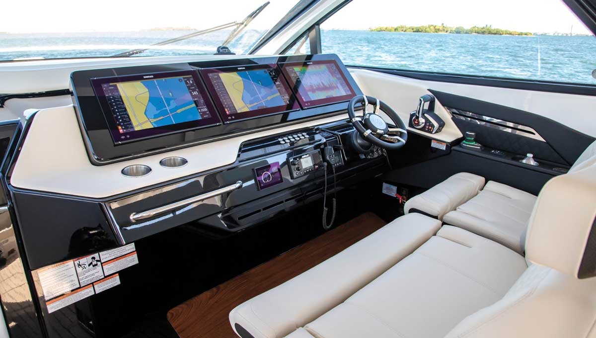 Yacht da crociera 50 GLS non è solo un normale yacht. È uno yacht che è come un'auto sportiva per l'acqua. GLS in realtà sta per (Grand Luxury Sport, nel caso te ne fossi dimenticato). Tre motori Mercury Verado V-12 da 600 cavalli ti fanno sentire come se fossi su un razzo, non su uno yacht. E quando premi il gas, ti spingerà letteralmente indietro nel comodo sedile del pilota. Questo yacht vola a quasi 100 km/h, ovvero fino a 49,6 nodi
