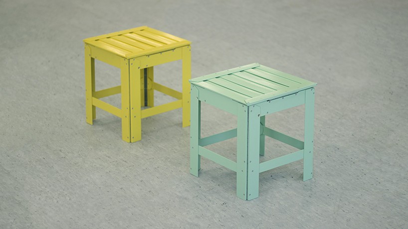 De-Dimension è kolekcija stolov in miz, ki so enkrat podobe za steno, drugič pa funkcionalni kosi pohištva.