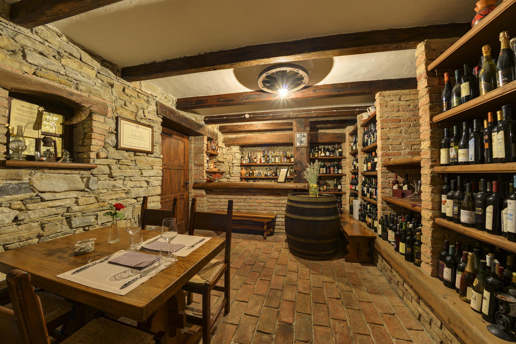 Alla fattoria, ti servono piatti tradizionali piatti fatti in casa da Bris con un tocco di cucina moderna. Il ristorante propone una cucina tradizionale a base di ingredienti stagionali e locali. Ecco perché il menu cambia settimanalmente. Pertanto, hanno due menu giornalieri basati su ingredienti di produzione locale, che coltivano in larga misura da soli o acquistano dai contadini circostanti. Di cui sono particolarmente orgogliosi prosciutto Briška fatto in casa, shalam, pancetta e altri salumi, che vengono prodotti e stagionati sotto il tetto della cascina con esperienza, conoscenza e amore per la tradizione. Producono in una moderna cantina vini bianchi freschi, tra cui la regina è ribula, oltre che bianca e rossa maturato in botti. Una visita ad una cantina locale vi servirà quindi una vasta gamma di vini, adatti a tutti i desideri e gusti.