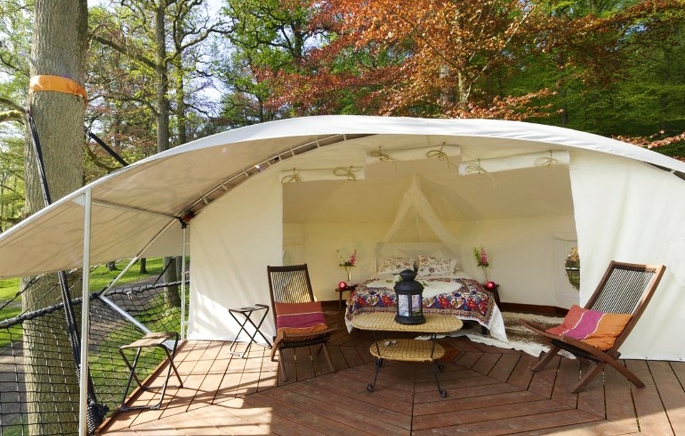 Dom’Up prenosna hiška na drevesih je vse tisto in še več, o čemer smo sanjali kot otroci. Gre namreč za izjemno dodelan prostor, osmerokotno platformo, ki se z lahkoto kosa z udobjem doma, saj vsebuje dvojno posteljo in teraso. Izdelal jo je sadjarski strokovnjak iz Danske, Bruno de Grunne, skupaj s francoskim drevesnim društvom Trees and People, zato je razumljivo, da je narejena tako, da za sabo ne pusti nobenih sledi na drevesu (ni nobenega vrtanja, privijanja v deblo, ipd.). In zaradi tega, ker je nad tlemi, ne prisili animali, da bi se potikale okoli šotora, poleg tega pa nas pred nekaterimi lahko tudi varuje. Odvisno pač, kje jo ”obesimo”.