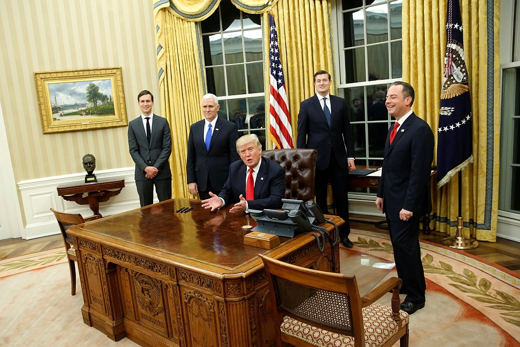 Allo Studio Ovale, dove un tempo assecondavano le loro passioni Bill Clinton e Monica Lewinsky, è stata restituita una statua dell'ex primo ministro britannico Winston Churchill, che Obama ha sostituito nel 2009 con un busto dell'attivista per i diritti civili Martin Luther King Jr e un ex presidente degli Stati Uniti Abraham Lincoln. King rimane tuttavia in carica e trova il posto sotto un'immagine della fiamma della Statua della Libertà.