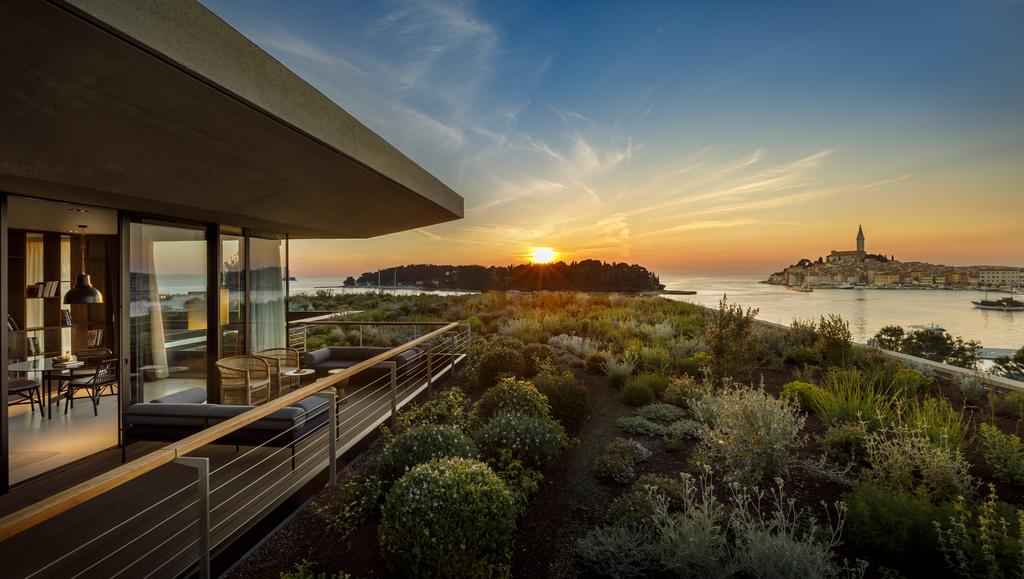Un albergo elegante Grand Park Hotel Rovigno sono stati progettati da un famoso architetto italiano Piero Lissoni e lo studio croato 3LHD. Lo studio milanese di Piero Lissoni - Lissoni Architettura, è uno dei designer e architetti italiani più rispettati e famosi in tutto il mondo, che definisce le tendenze nel design di prodotto globale. Le opere di Lissoni trasudano minimalismo e presta particolare attenzione alla scelta dei materiali che decorano gli interni dell'hotel.