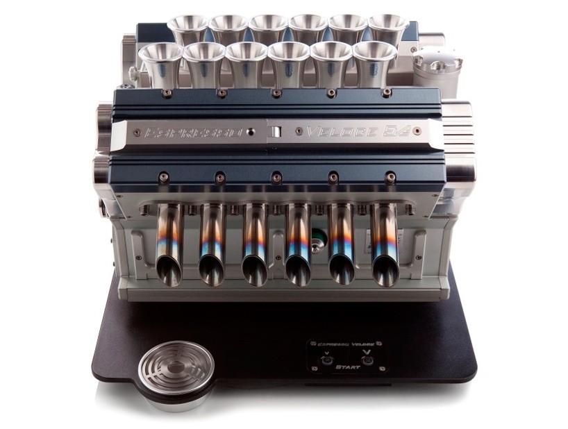 Accendiamo a pieno regime il nostro motore mattutino! Espresso Veloce ha progettato una splendida macchina da caffè V12 in omaggio al famoso motore da corsa Grand Prix degli anni '90, replicando le parti più sofisticate della bestia d'acciaio.