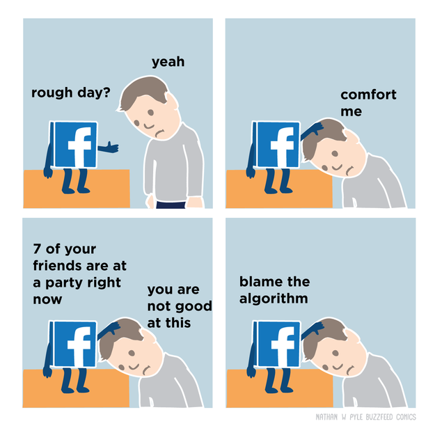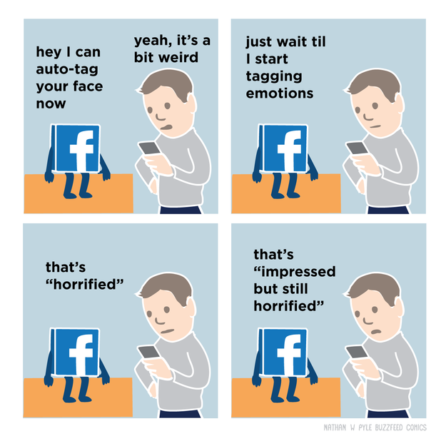 Nelle illustrazioni satiriche, Nathan W. Pyle da Buzz Feed impazzisce con molte funzionalità Facebook, e c'è anche molta verità nascosta in loro. Dipinge in modo divertente disagi che Facebook ci causa ogni giorno.