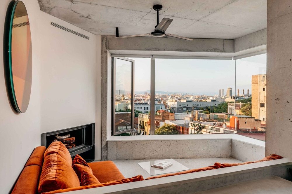 L'arredamento interno e i mobili sono stati accuratamente selezionati in modo che si completino a vicenda coordinarsi il più possibile. Un'attenta selezione dei materiali offre così una meravigliosa tavolozza dove calcestruzzo unisci con legno di castagno, acciaio inox, marmo di Carrara e vetro. Il risultato è uno spazio accogliente e sofisticato allo stesso tempo. L'arredamento dell'appartamento rimanda anche agli ambienti che lo circondano, come la rotonda Sabine Marcelis o il lussuoso divano, che con il suo colore rossastro ricorda i tetti di Barcellona. I residenti possono anche godere della vista da questo spazio abitativo piacevole e intimo sulla vegetazione circostante e sull'ambiente urbano!