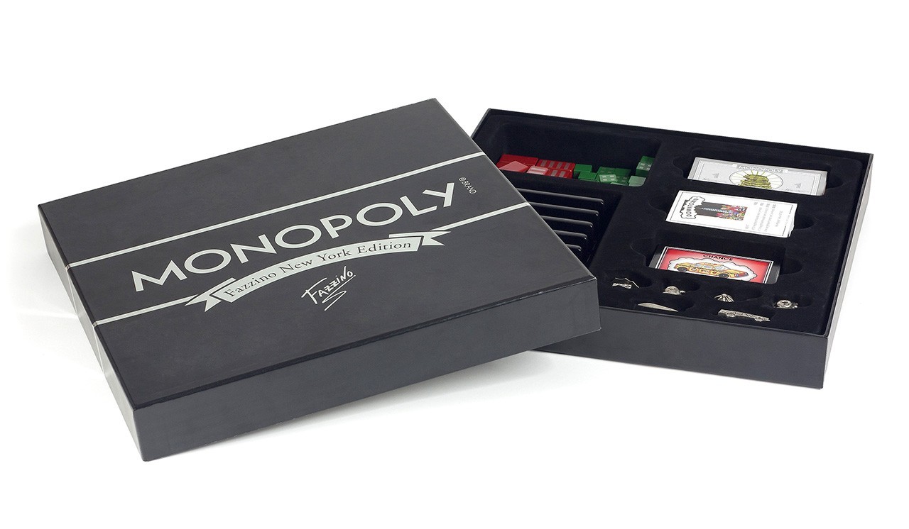 Monopoli 3D è prodotto in sole 2000 unità, al prezzo di 500 dollari. Il gioco si svolge su una tavola di legno, sulla quale ci sono le "trame" di New York. Ogni figura giocattolo è realizzata a mano in legno. Il gioco è rivestito in vetro numerato e firmato dall'autore e designer Carlo Fazzino.