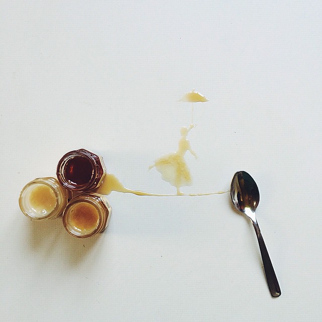Da un lato, siamo persone che spesso versare il caffè sulla scrivania e poi andiamo nel panico e cerchiamo di salvare i documenti e la tastiera, ma dall'altra parte c'è Giulia Bernardelliche vede ispirazione nel caffè politico e crea opere d'arte dalle macchie di caffèInvece dei colori, usa il liquido nero versato e trasforma le macchie in illustrazioni. Ma nel mezzo troviamo anche dipinti creati fatto con gelato fuso, cioccolato e miele.