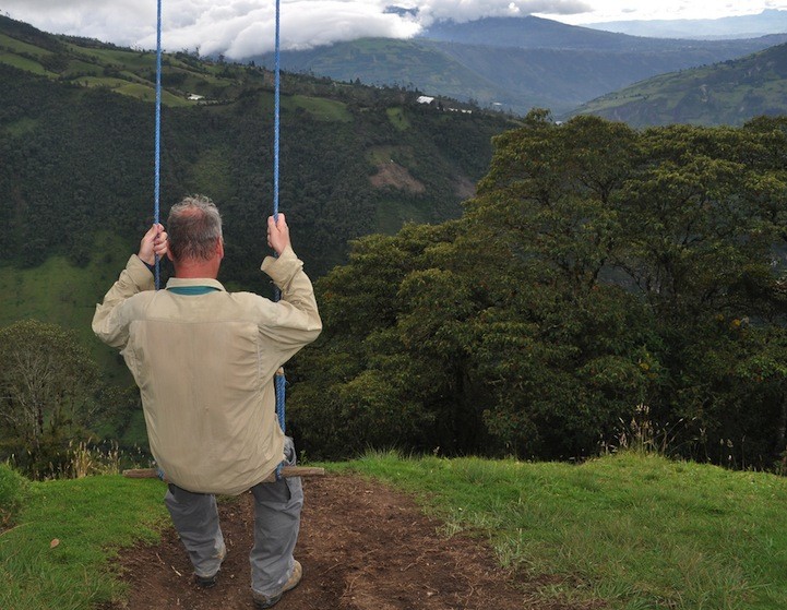 Ci vuole molto e anche più coraggio per dondolarsi in una casa sull'albero in Ecuador, e non puoi biasimarlo se la paura lo tradisce. Riesci a immaginare di dondolare su una scogliera?