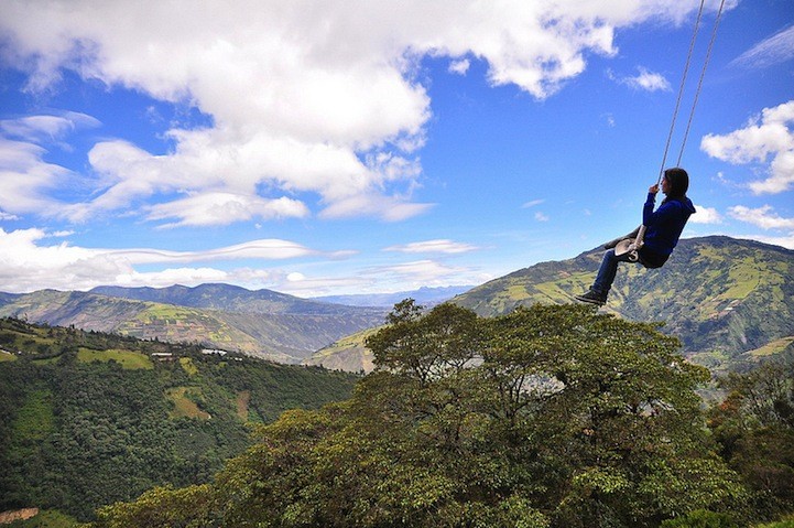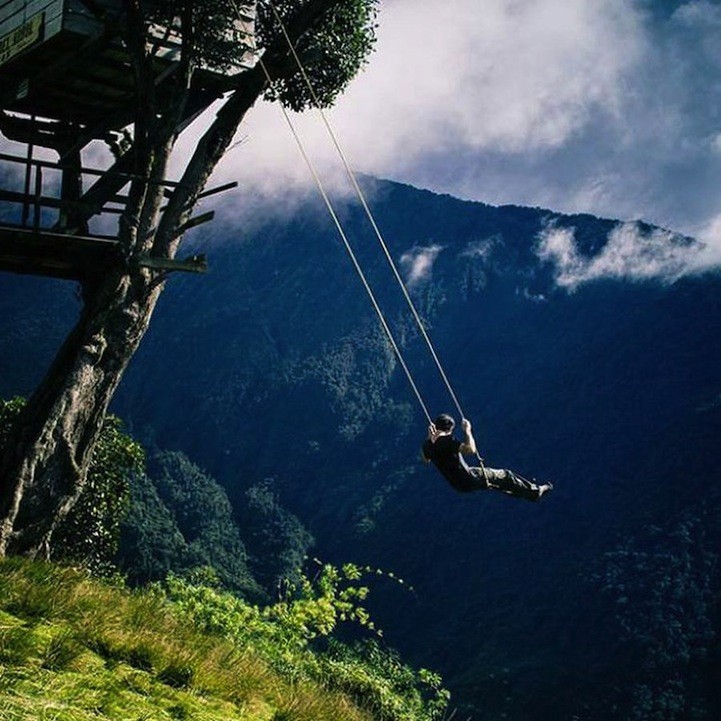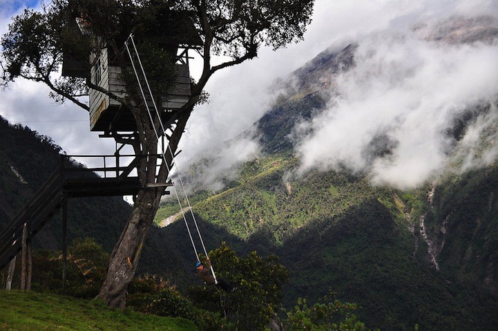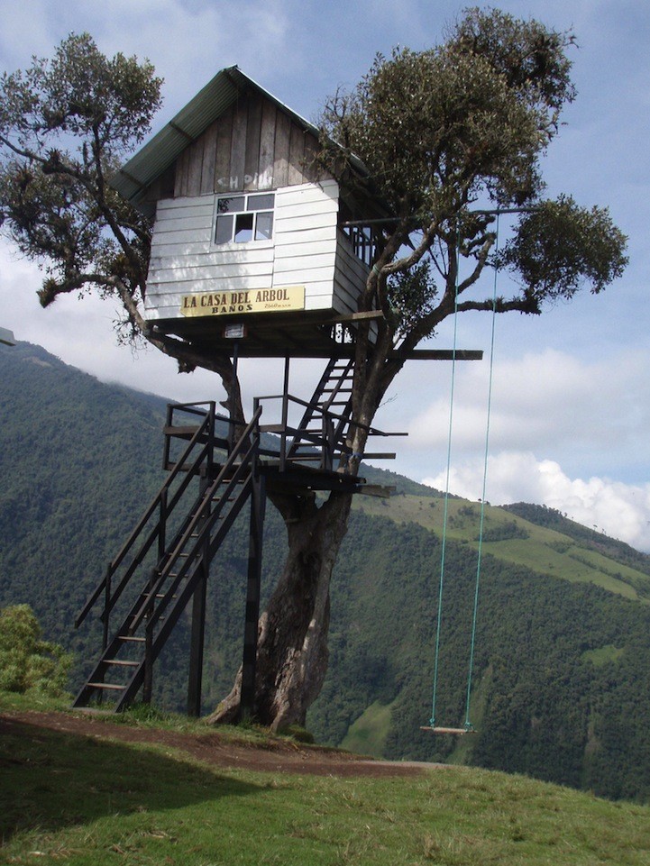 ”Casa del arbol” ali hišica na drevesu je majhna lesena hišica na drevesu v ekvadorskem Baňosu. Na njej je držalo, ki drži gugalnico (zdi se precej tanka) za pogumne.