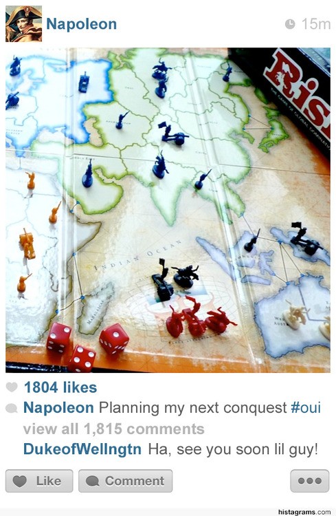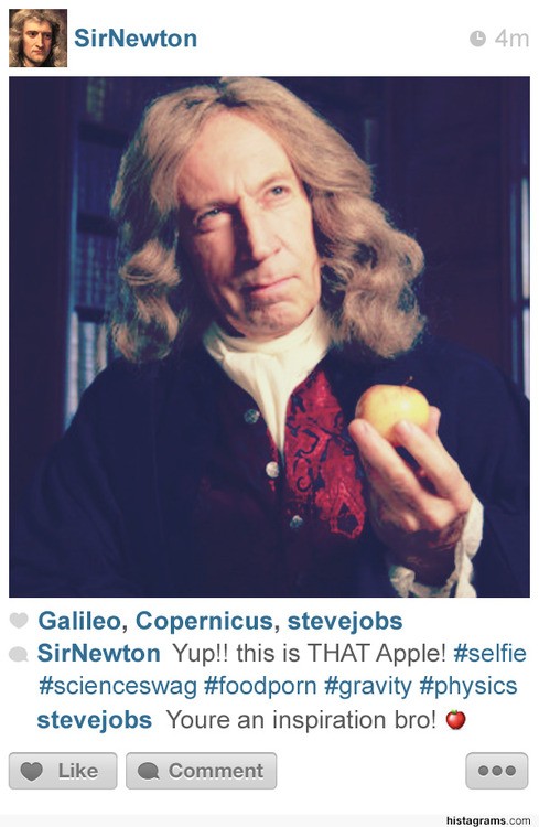 Eden najbolj priljubljenih aplikacij za pametne telefone, Instagram, je zvezda današnje zabavne galerije. Avtorja zbirke, oblikovalca Gusto NYC and Gavin Alaoen, sta pomembne mejnike iz naše zgodovine opremila s “hashtagi” in komentarji. Si predstavljate astronavta Armstronga ali Jezusa z iPhonom v roki?