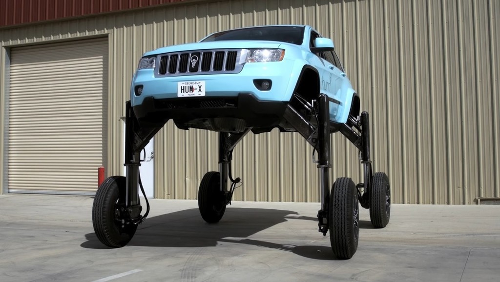 L'Hum Rider potrebbe non essere un veicolo di produzione, ma un veicolo utilitario come questo Jeep Grad Cherokee è qualcosa che tutti vorrebbero possedere, specialmente quando siamo bloccati nel traffico. Con l'aiuto di ascensori idraulici, l'Hum Rider si alza sopra gli altri veicoli e cavalca letteralmente sopra di loro.