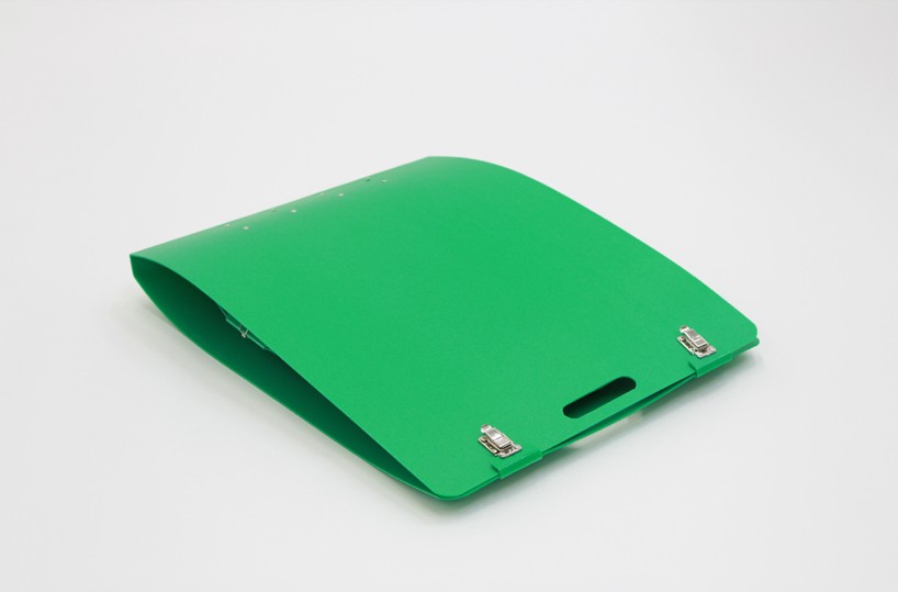Svetovno poznana japonska tehnika origami izvorno ploščate papirnate površine oblikuje v volumetrične objekte. Domiseln projekt Marika Tsujimota izhaja ravno iz slednjega. Zložena mapa iz lahkotne umetne mase se namreč enostavno, z eno potezo spremeni v živahno barviti stol, kavno mizico, knjižno polico O pisarniški predalnik. S takšnim zanimivim pop up učinkom ustvarja igrivo interaktivno uporabniško izkušnjo.