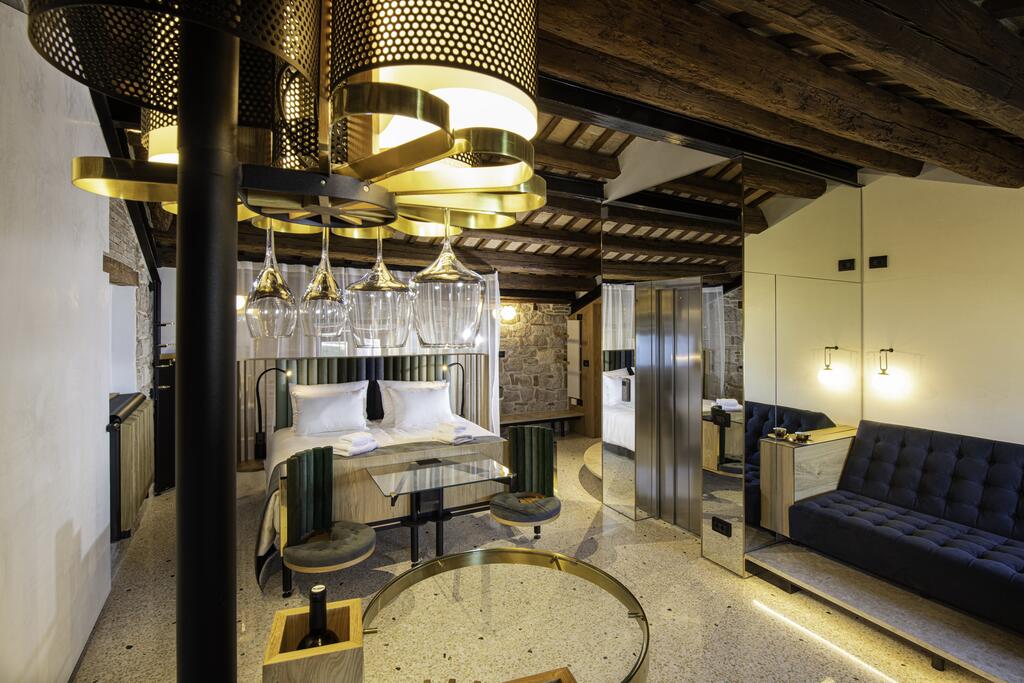 La maggior parte degli interni è realizzata a mano con materiali come legno, vetro e ottone, tutti basati sulle idee del duo di architetti Saše e Sveta Dobričić dello studio di architettura ADAL di Lubiana. Guidato dal principio della qualità superiore, questo hotel crea una nuova e autentica esperienza di vacanza, perfettamente adatta agli ospiti che non accettano compromessi. A tutto questo contribuisce anche la perfetta combinazione di architettura, gastronomia, vacanze secondo tutti gli elevati standard mondiali e posizione. L'hotel è situato nel centro storico, nel cuore di Rovigno, ed è la scelta perfetta per un fine settimana prolungato.