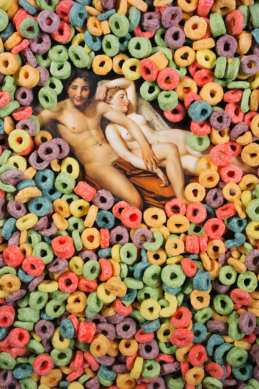 Zeren Badar ricerca attentamente una moderna combinazione di tecniche di fotografia, pittura e collage. Posiziona oggetti trovati e un po' stravaganti come elastici per capelli, scarpe da uomo, caramelle e scaglie colorate su vecchi dipinti mal pressati, portando così creazioni uniche e del tutto inaspettate con un tocco audace di arte contemporanea.
